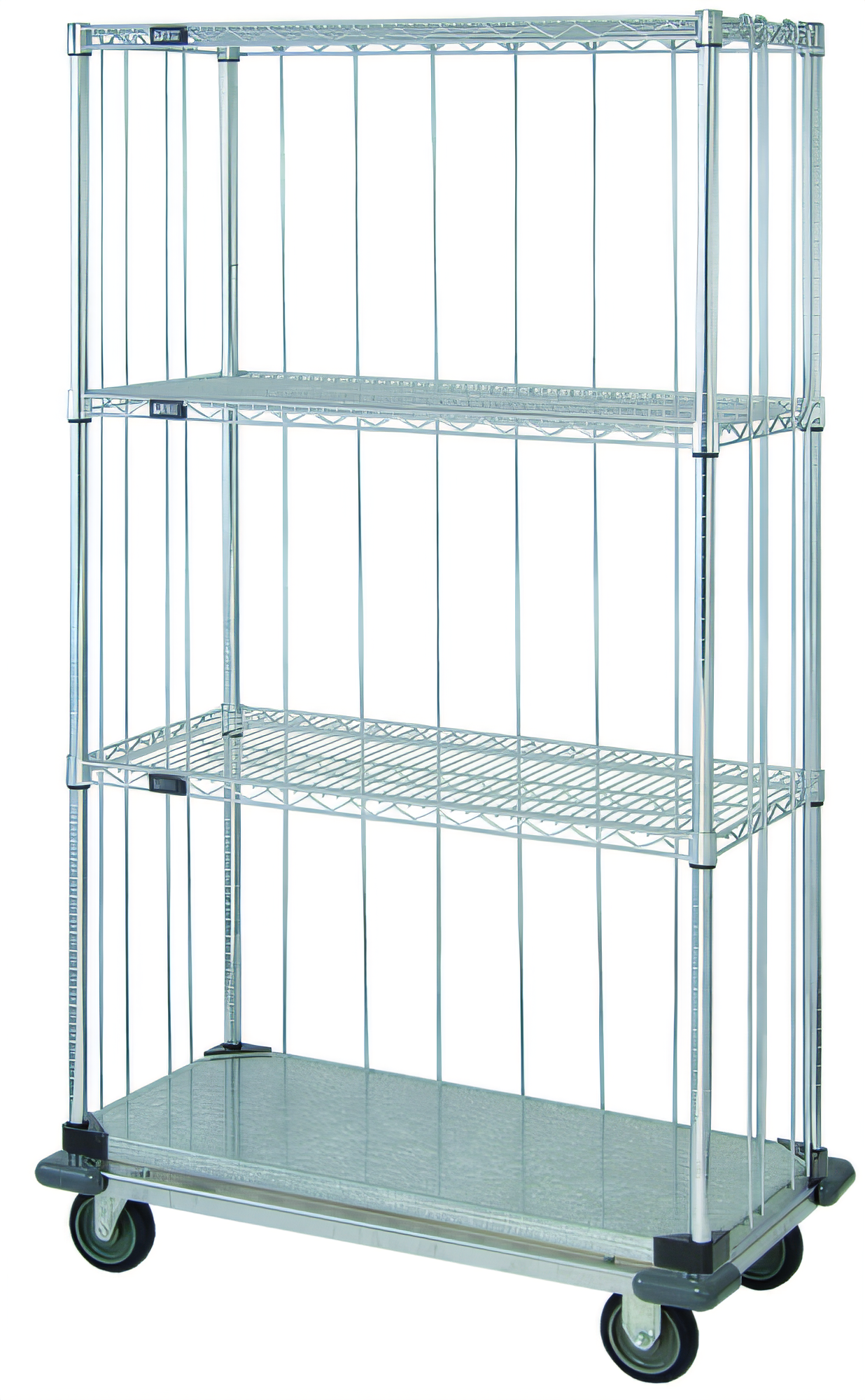 Complete kit with wire & solid shelves, dolly base and locking castersTurn standard wire shelving into a fully enclosed, easy-rolling storage cart. Quantum’s chrome-plated Mobile Enclosure Cart keeps contents contained, visible and ready to move wherever work takes you.