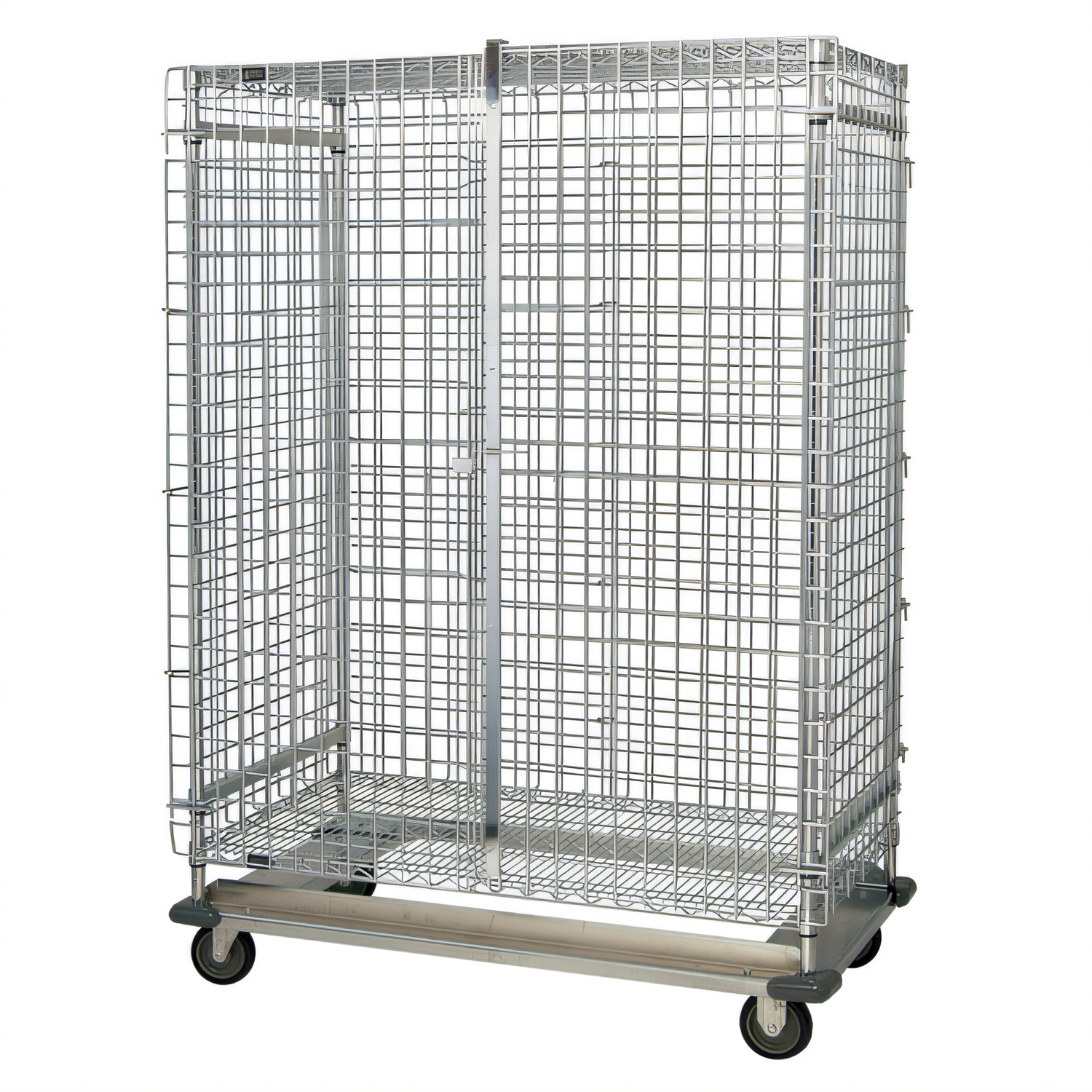 Model MD2460-70SEC | NSF-ListedProtect high-value inventory while keeping it visible and easy to move. This heavy-duty, chrome-plated security cage rolls on a welded dolly base and locks up in seconds, giving you the perfect blend of access, mobility, and theft deterrence.
