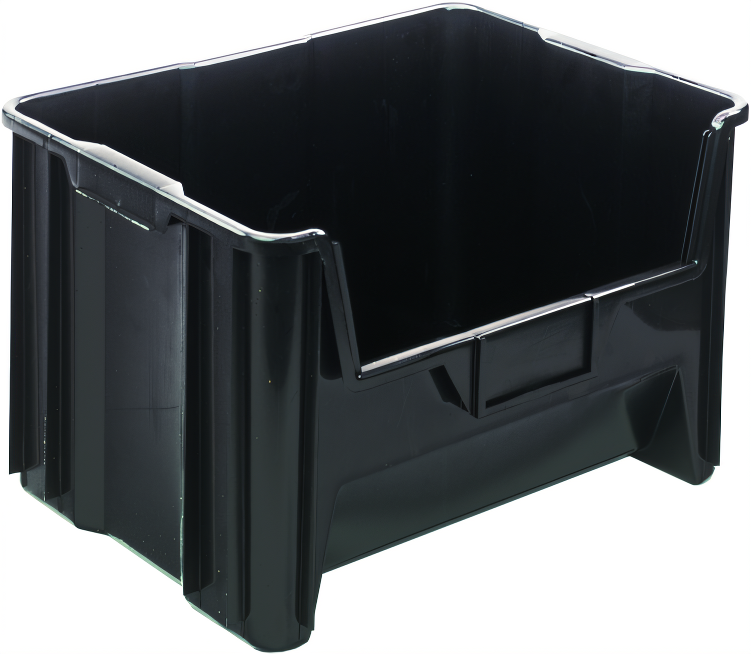 Container, stacking, 15-1/4" x 19-7/8" x 12-7/16", injection recycled polypropylene, six 1/4" drill hole pattern on bottom allows for easy hole insertion for drainage and air circulation, black, Made in USA (Priced per each) Must be purchased in multiples of 3