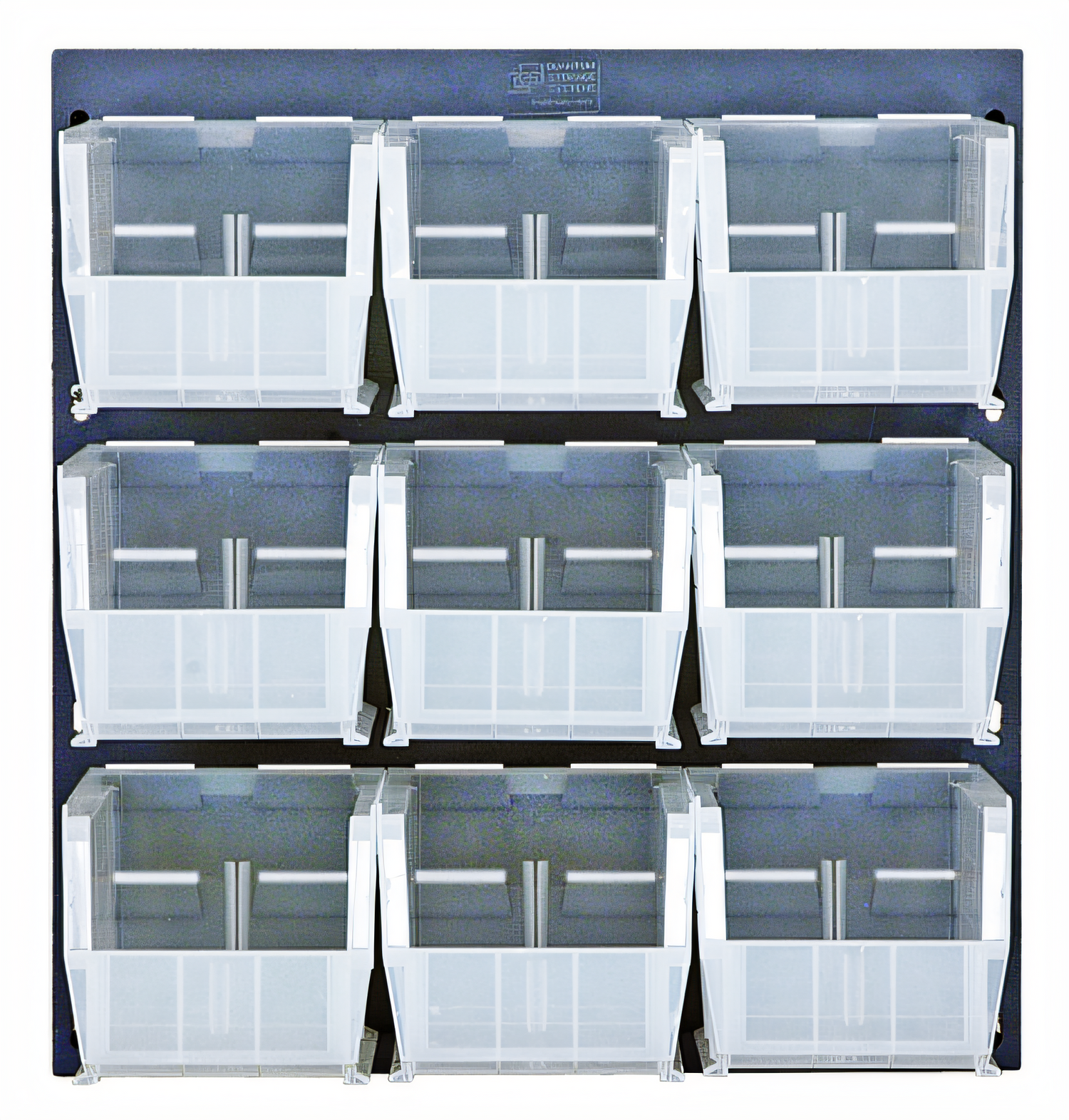 Louvered Panel, wall mounted, 18"L x 19"H, includes: (9) QUS230, clear bins, heavy-duty 16 gauge cold rolled steel, gray enamel coated finish (mounting hardware not included)