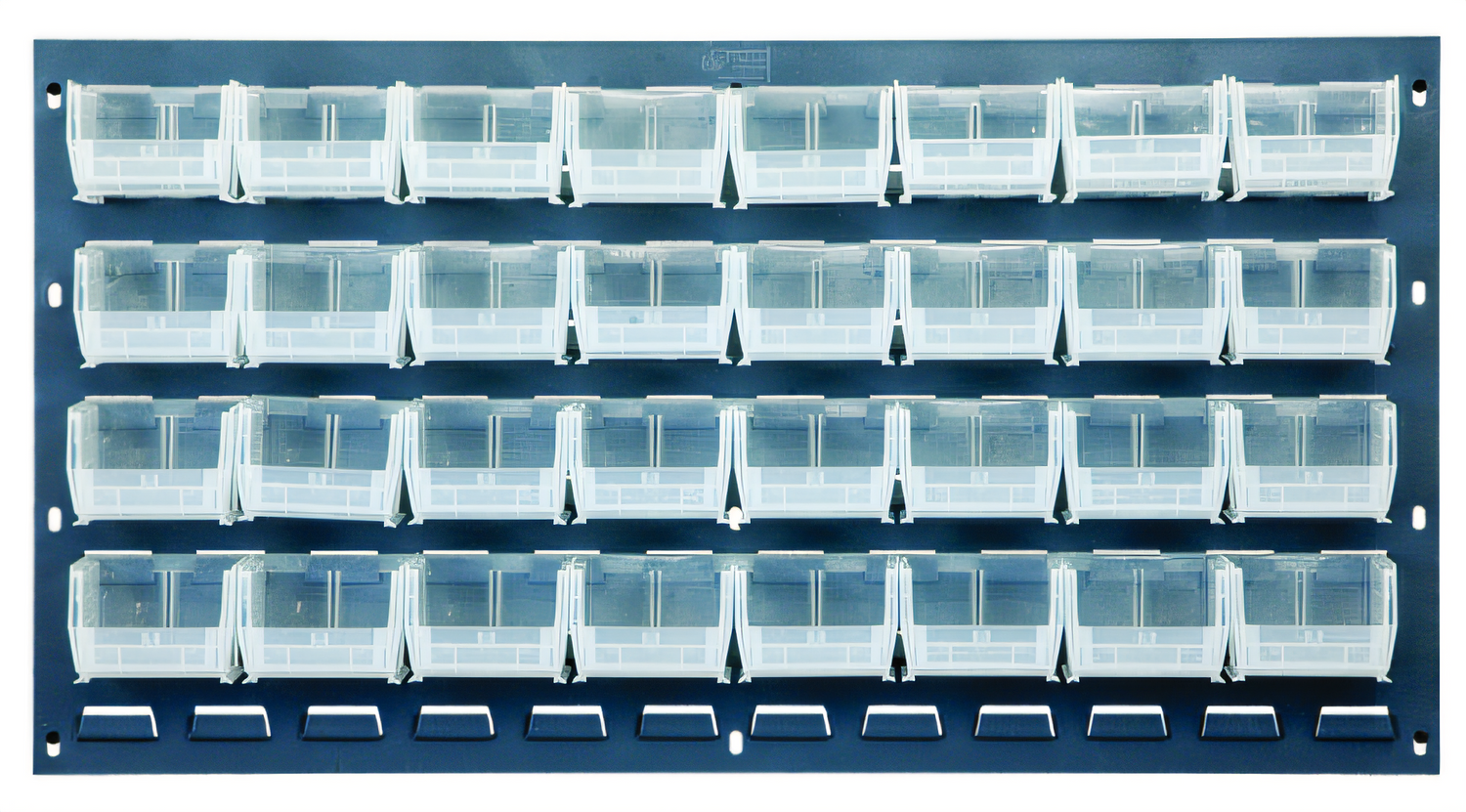Louvered Panel, wall mounted, 36"L x 6"D x 19"H, includes: (32) QUS210, clear bins, heavy-duty 16 gauge cold rolled steel, gray enamel coated finish (mounting hardware not included)