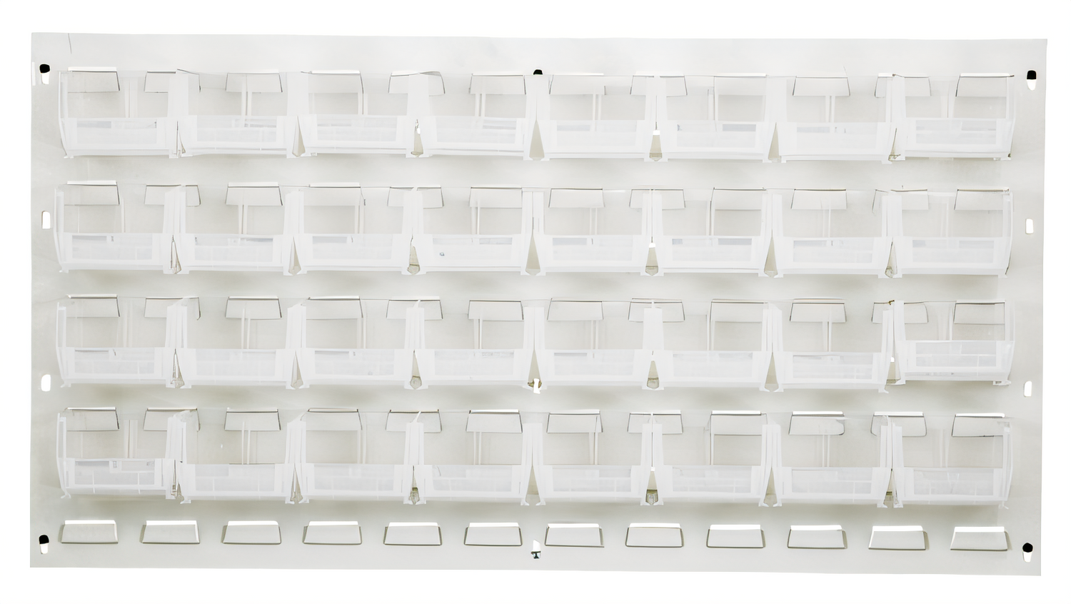 Louvered Panel, wall mounted, 36"L x 6"D x 19"H, includes: (32) QUS210, clear bins, heavy-duty 16 gauge cold rolled steel, oyster white enamel coated finish (mounting hardware not included)