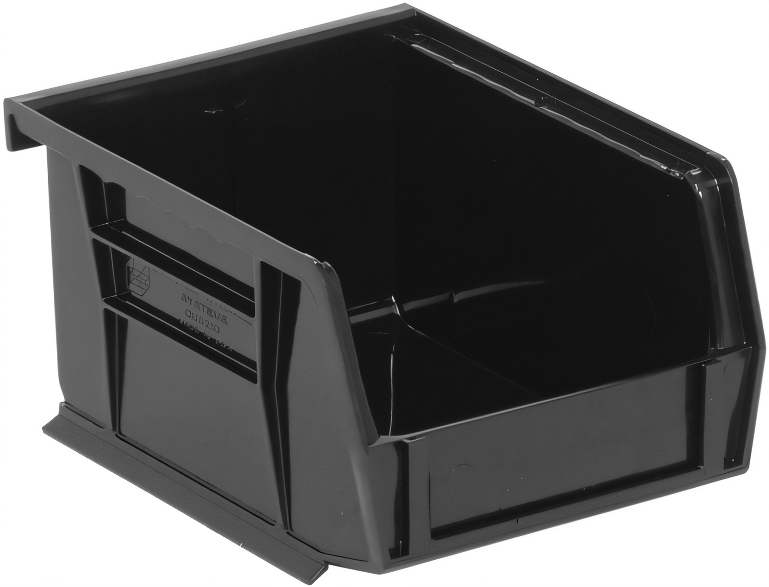 Bin, stacking or hanging, 4-1/8"W x 5-3/8"D x 3"H, front/back/side grips, anti-slide lock, (1) divider slot, rear hanger, molded-in label holder, recycled polypropylene, black, Made in USA, (Must be purchased in multiple of 24)