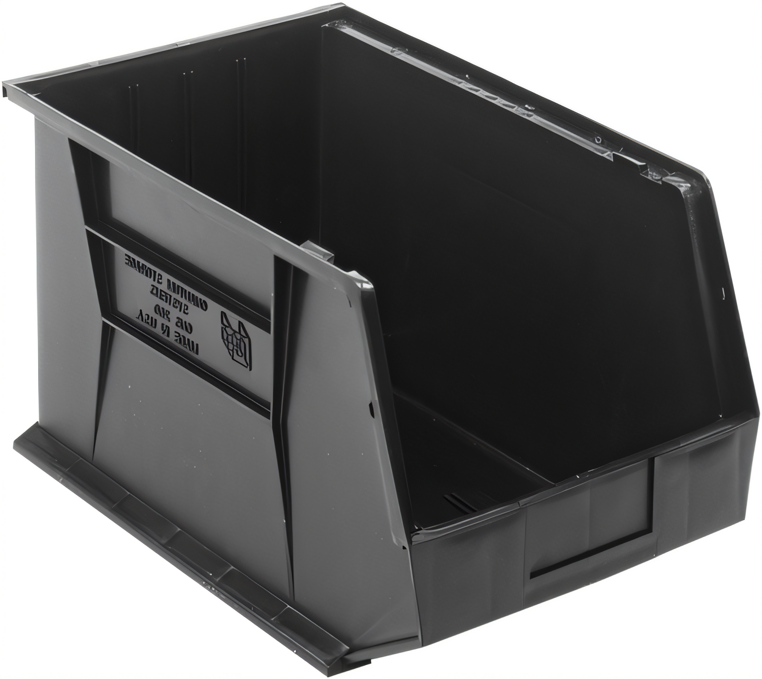 Bin, stacking or hanging, 11"W x 18"D x 10"H, front/back/side grips, anti-slide lock, (3) divider slots, rear hanger, molded-in label holder, recycled polypropylene, clear, Made in USA, (Must be purchased in multiple of 4)