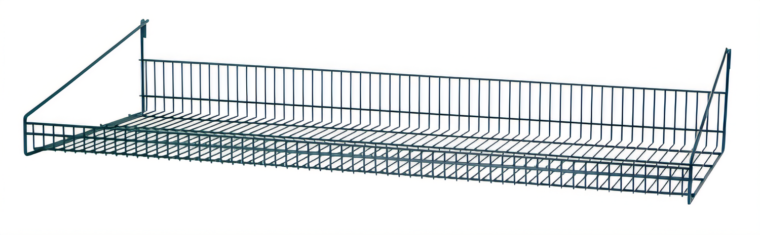 Store Grid Shelf, 48"W x 14"D x 7-1/2"H, with retaining front edge, green epoxy antimicrobial finish, NSF