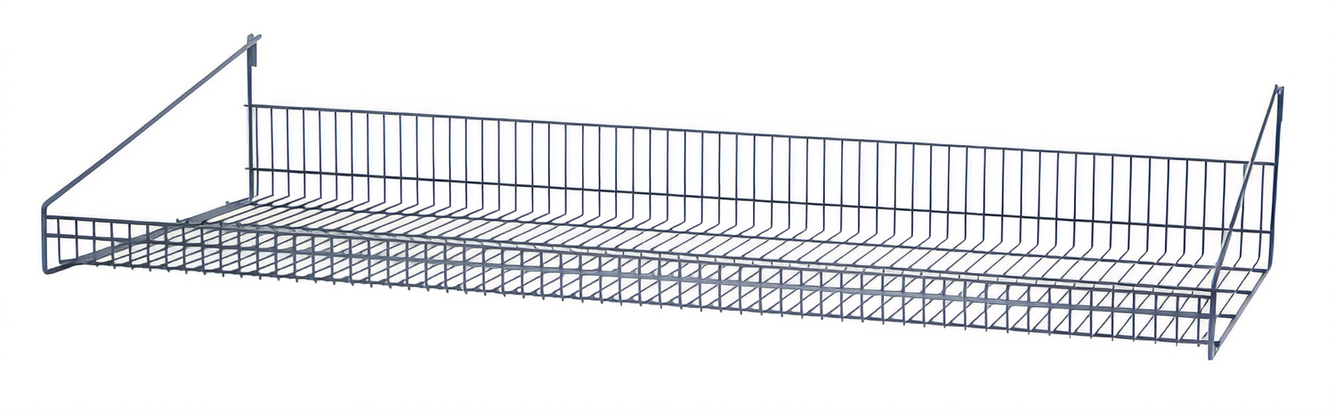 Store Grid Shelf, 48"W x 18"D x 7-1/2"H, with retaining front edge, gray epoxy antimicrobial finish, NSF