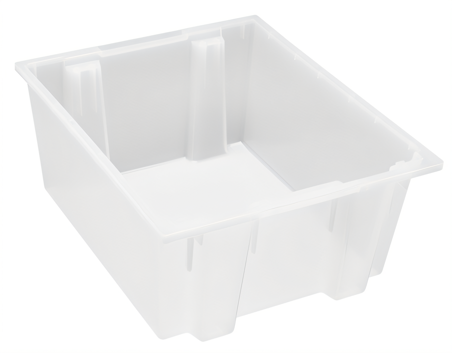 Stack and Nest Tote, 23-1/2"W x 19-1/2"D x 10"H, heavy duty, 2.00 cu. ft. capacity, clear polypropylene, Made in USA (priced per each, 3 each per carton, sold per carton)