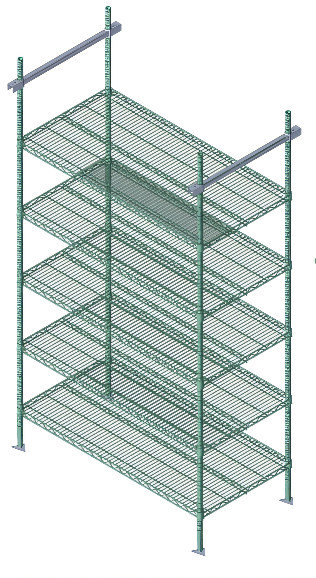 Intermediate Kit, 18", includes: (4) 86"H posts (pre-inserted leveler), (4) foot plates & (2) double-sided overhead track support brackets, green epoxy antimicrobial finish, NSF