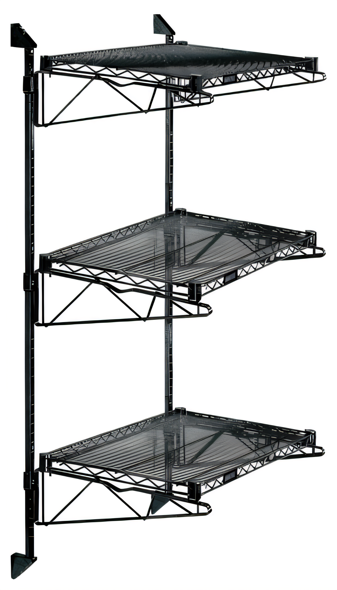 Cantilever Single Shelf Post Wall Mount, (3) wire shelf, (2) 54" posts, (3) 21" cantilevers and (3) mounting brackets, black epoxy antimicrobial finish, NSF