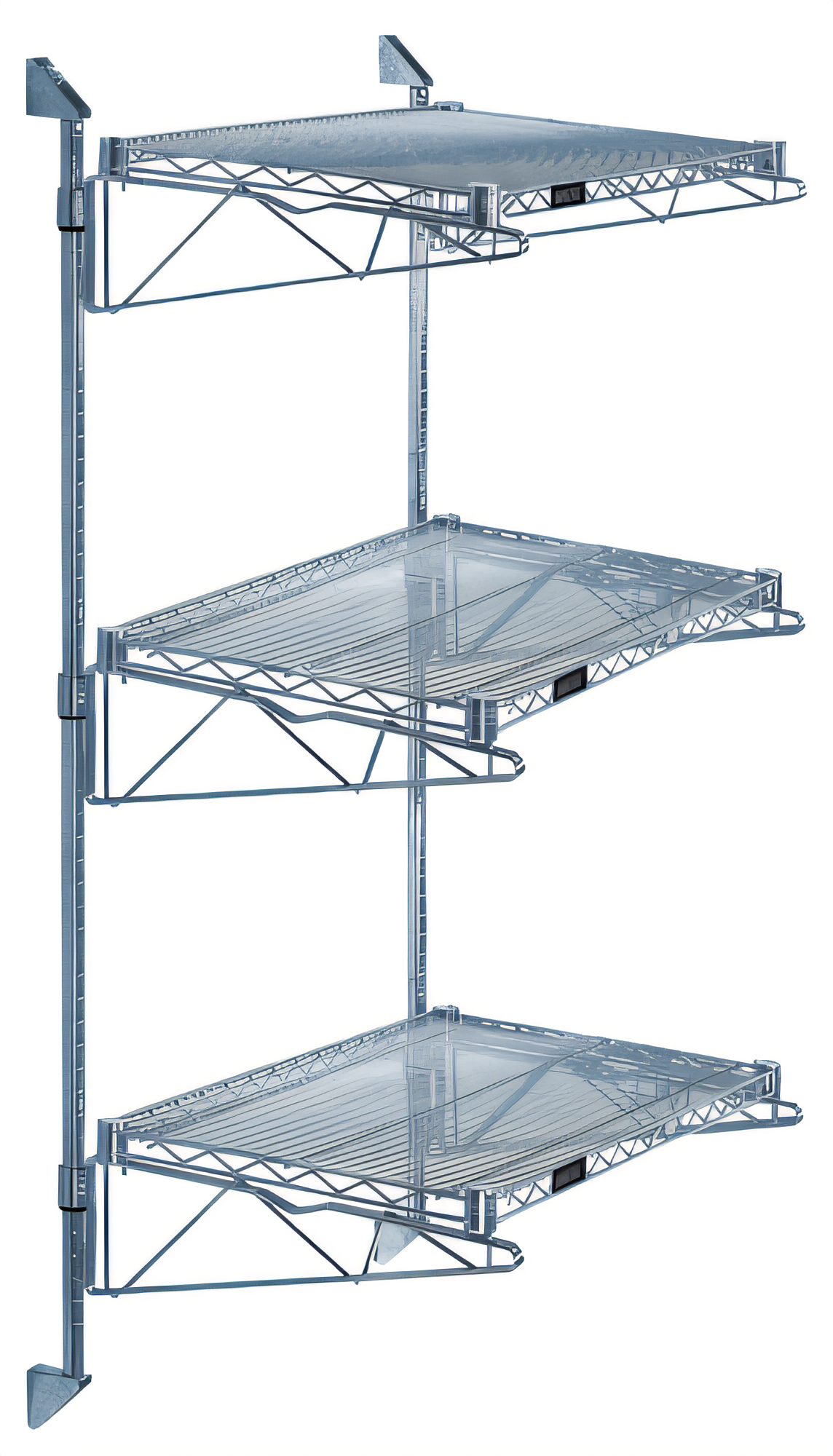 Cantilever Single Shelf Post Wall Mount, (3) wire shelf, (2) 54" posts, (3) 24" cantilevers and (3) mounting brackets, gray epoxy antimicrobial finish, NSF