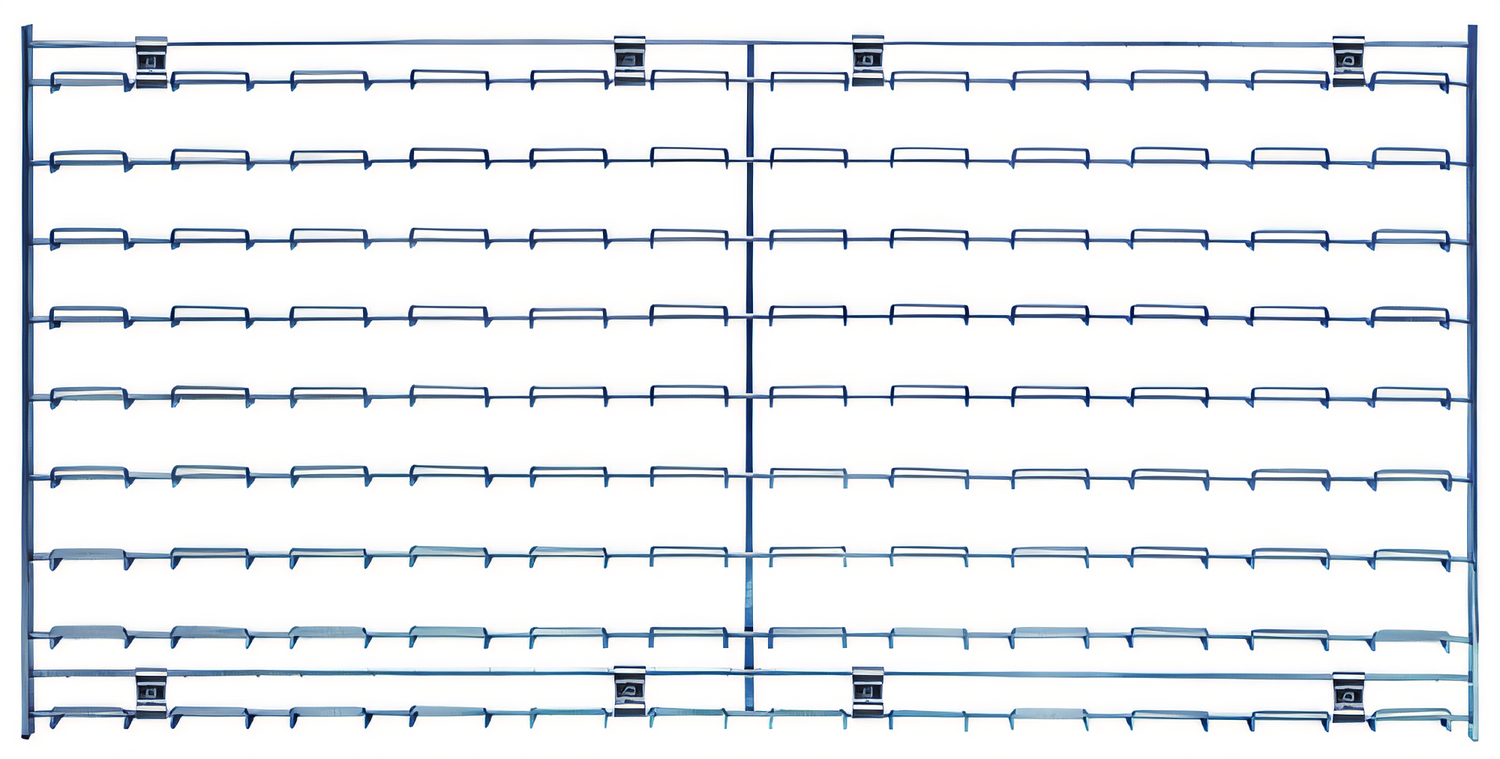 Wire Louvered Panel, 36"W x 18"H, 175 lb. load capacity, accepts all sizes of Ultra Stack & Hang & Mesh bins, includes (8) direct mounting clips, chrome plated finish (hardware not included)