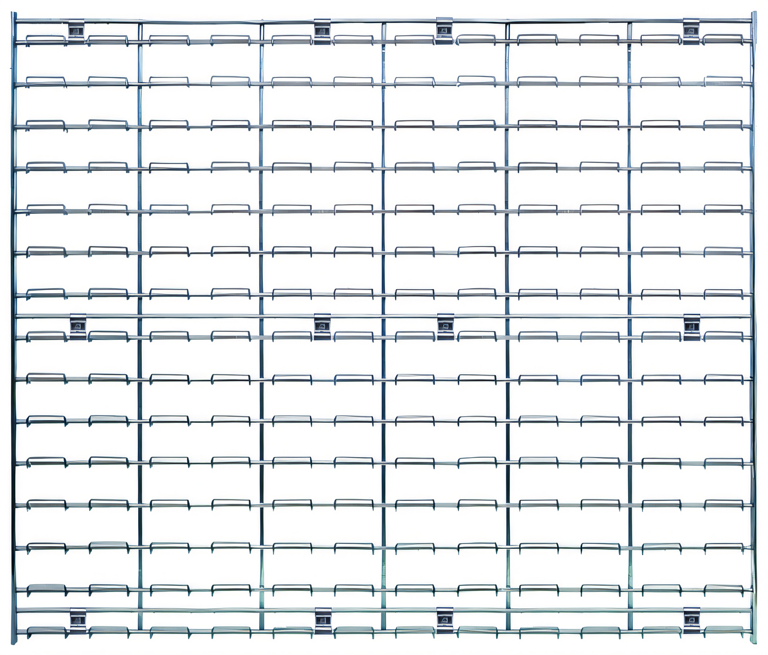 Wire Louvered Panel, 36"W x 30"H, 250 lb. load capacity, accepts all sizes of Ultra Stack & Hang & Mesh bins, includes (12) direct mounting clips, chrome plated finish (hardware not included)