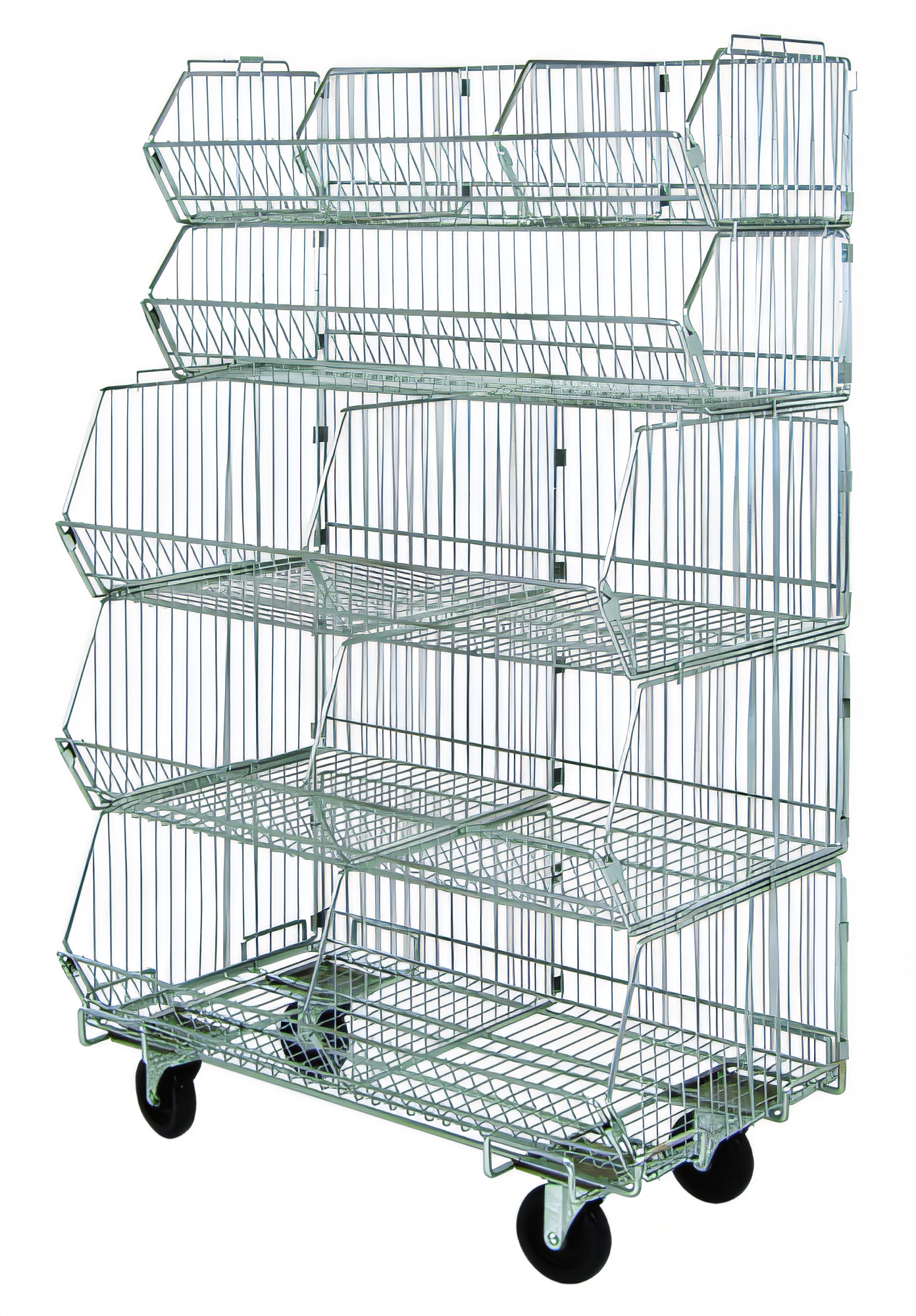 Stacking Basket System, mobile, 36"W x 20"D x 60"H, 80 lbs. load capacity per basket, includes: (2) 1436BC with dividers, (3) 203612BC with dividers and dolly base with casters, chrome plated finish