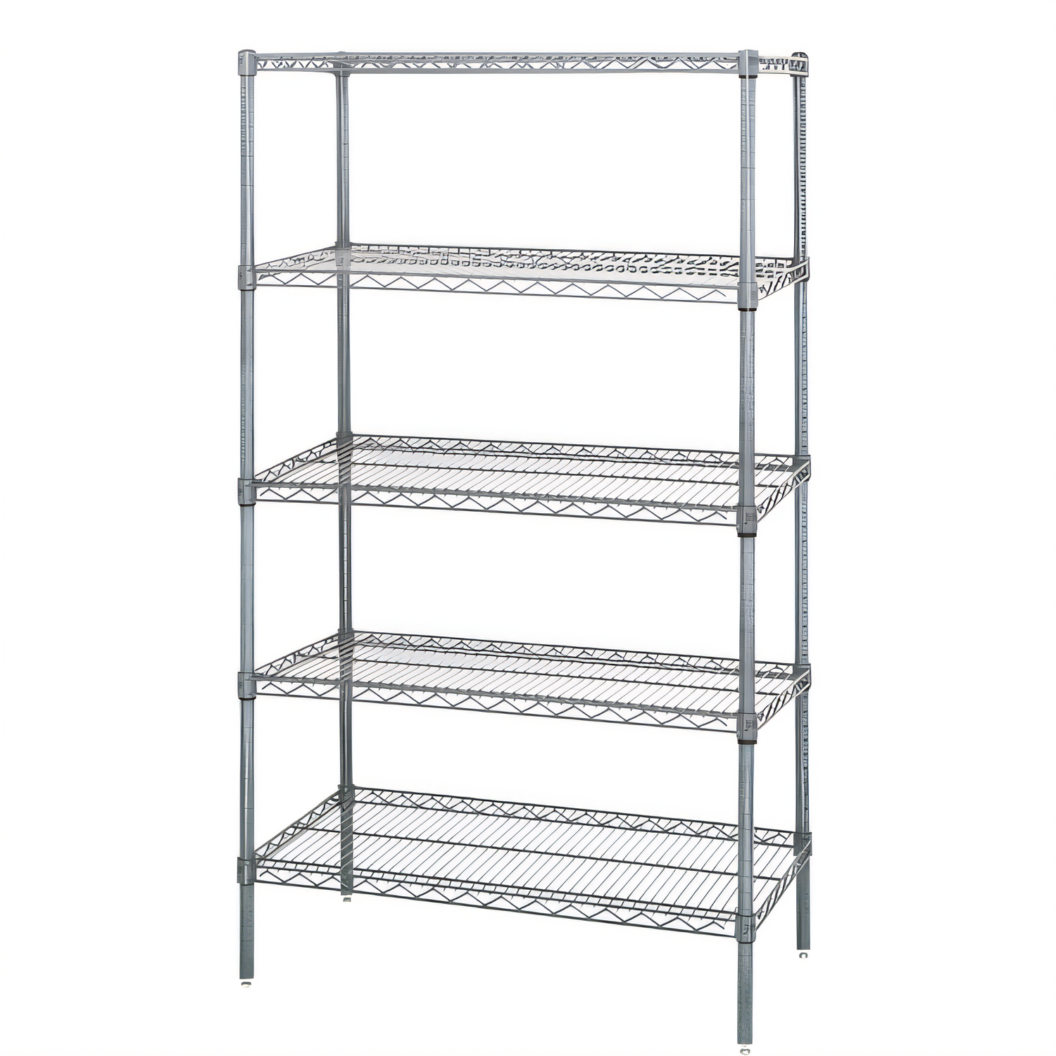 Wire Shelving Starter Kit, 60"W x 24"D x 63"H, 600 - 800 lb. capacity, includes (5) wire shelves & (4) posts, chrome plated finish, NSF, shipped KD