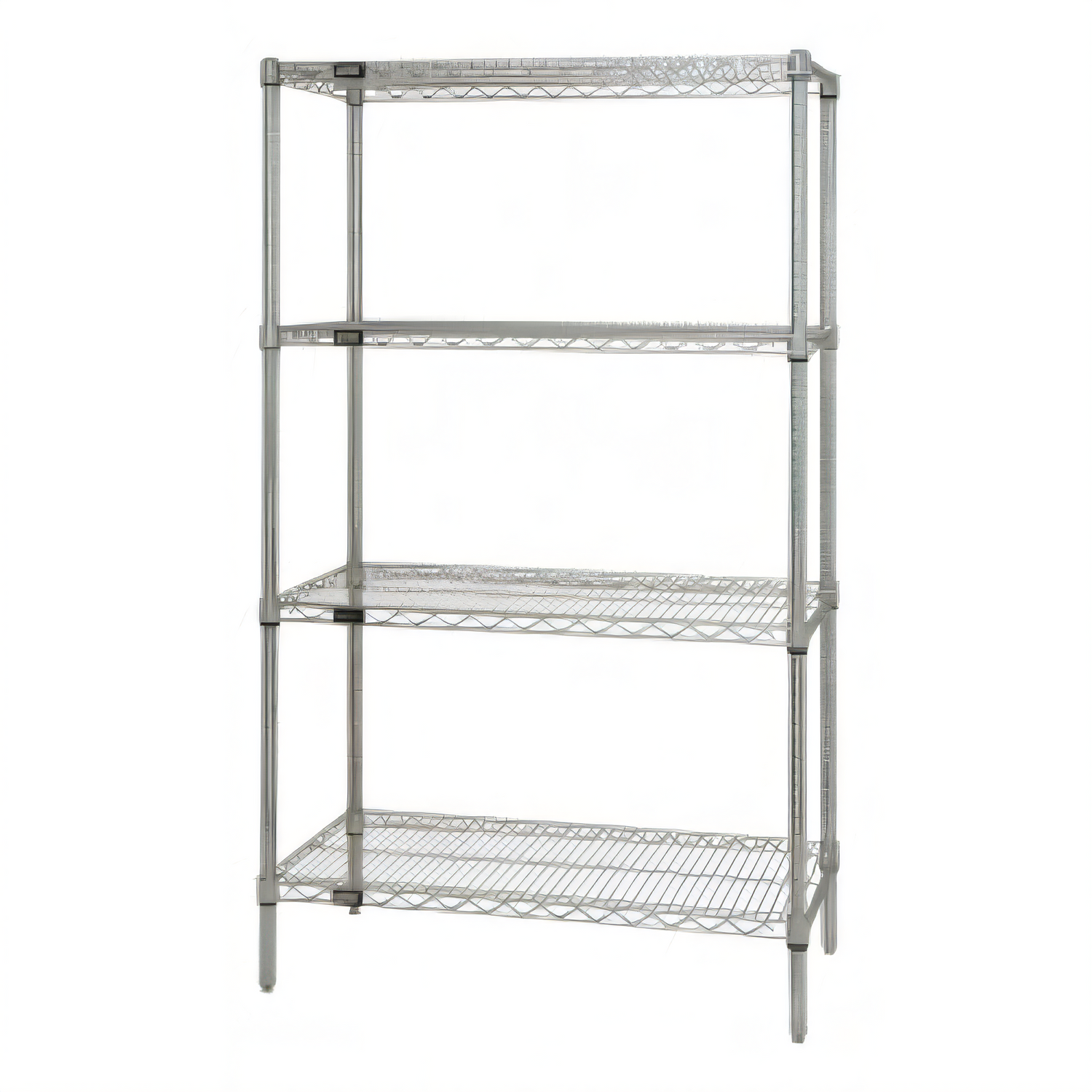 Wire Shelving Starter Kit, 36"W x 18"D x 74"H, 600 - 800 lb. capacity, includes (4) wire shelves & (4) posts, chrome plated finish, NSF, shipped KD