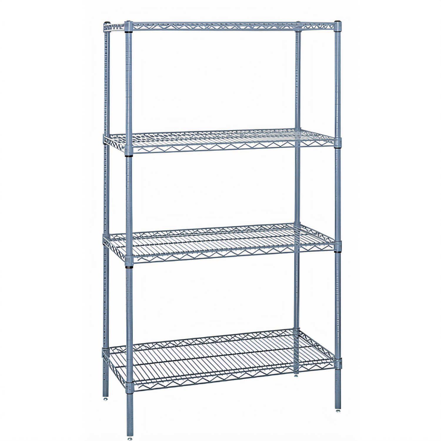 Wire Shelving Starter Kit, 36"W x 18"D x 74"H, 600 - 800 lb. capacity, includes (4) wire shelves & (4) posts, gray epoxy antimicrobial finish, NSF, shipped KD