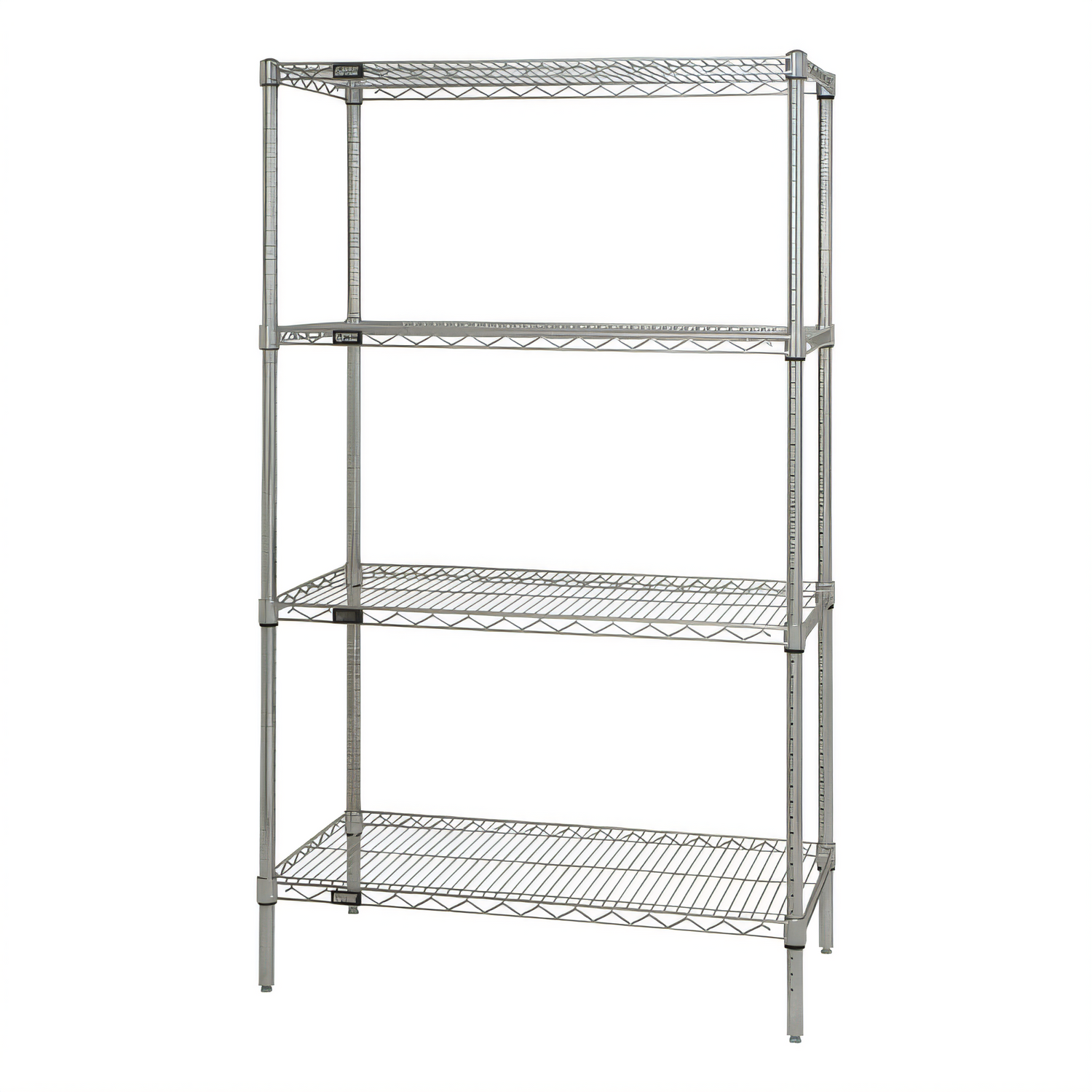 Wire Shelving Starter Kit, 72"W x 21"D x 74"H, 600 - 800 lb. capacity, includes (4) wire shelves & (4) posts, chrome plated finish, NSF, shipped KD