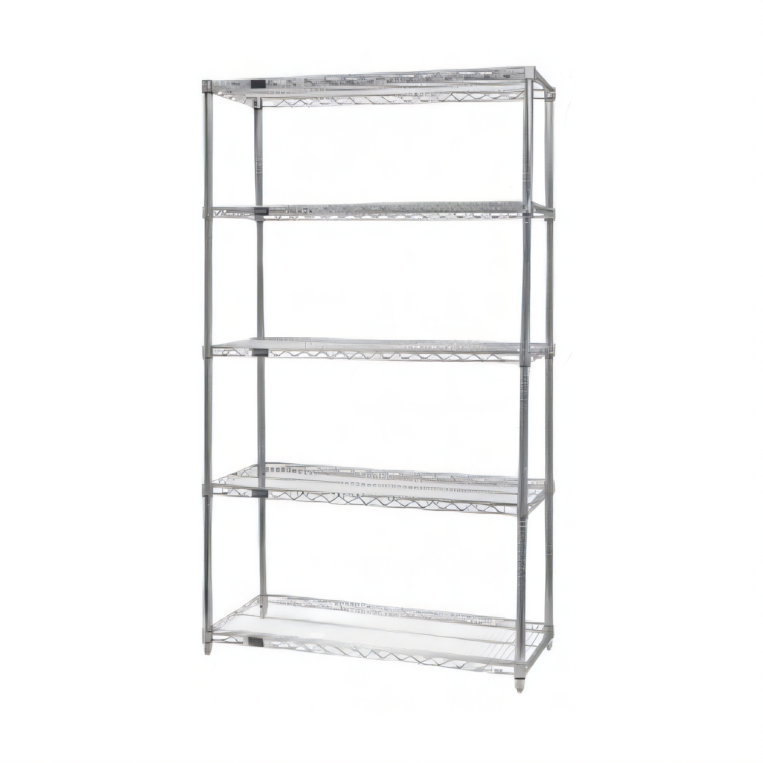 Wire Shelving Starter Kit, 24"W x 18"D x 86"H, 600 - 800 lb. capacity, includes (5) wire shelves & (4) posts, chrome plated finish, NSF, shipped KD