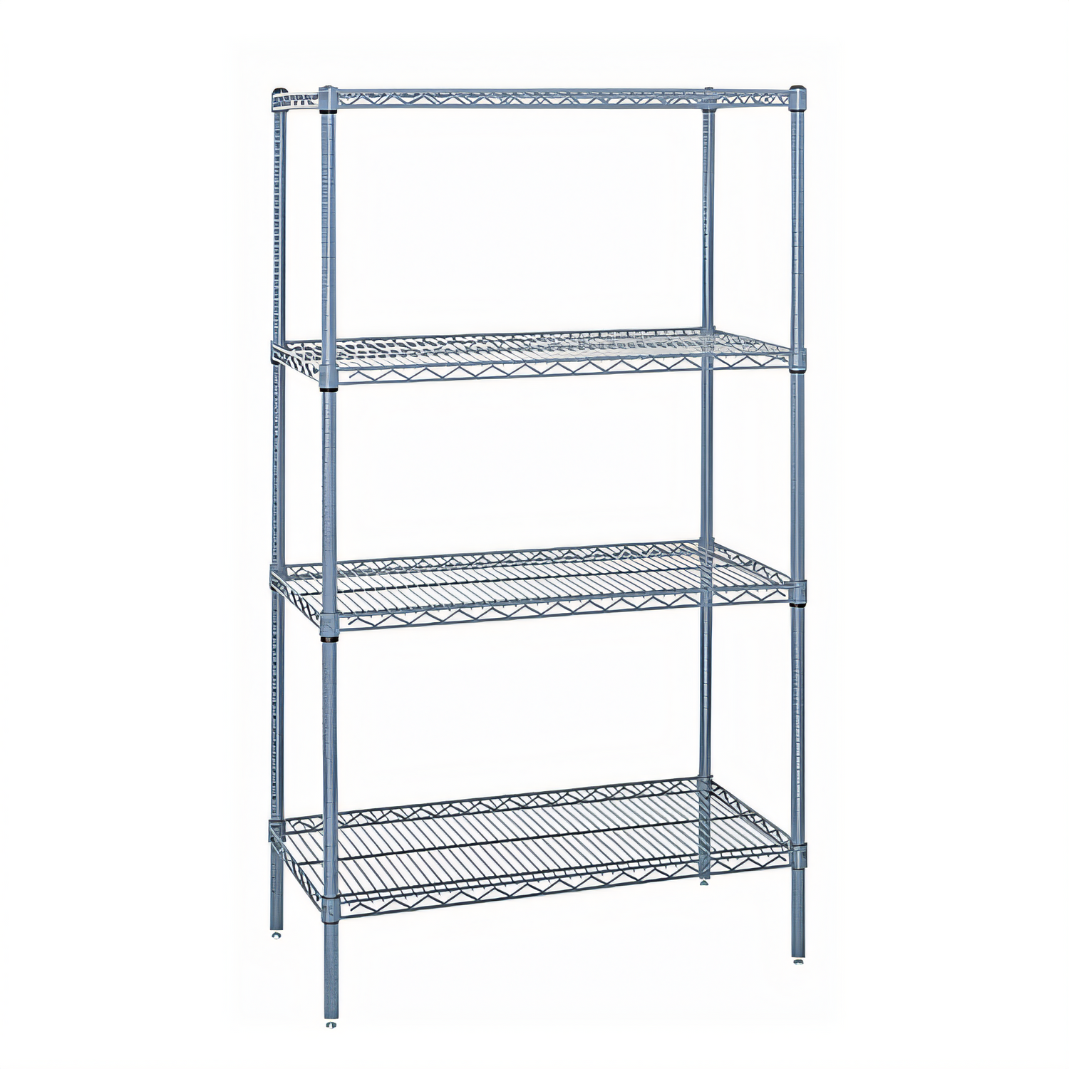 Wire Shelving Starter Kit, 48"W x 24"D x 86"H, 600 - 800 lb. capacity, includes (4) wire shelves & (4) posts, chrome plated finish, NSF, shipped KD