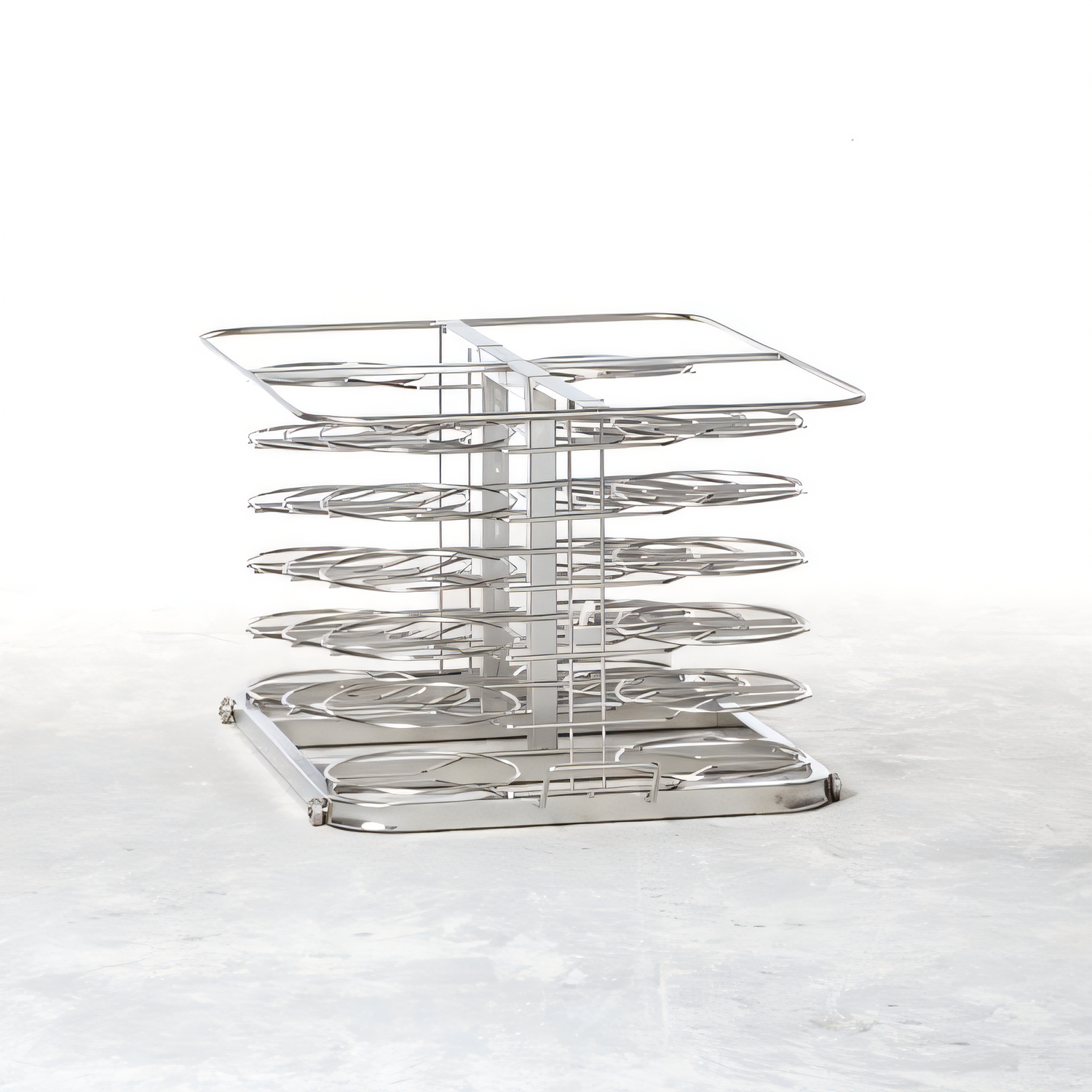 RATIONAL 60.62.017 Mobile Plate Rack — heavy-duty storage and transport solution for professional kitchens. Fits 6 full-size Pro/Classic racks and holds 34 plates (12-1/4") with max plate height 1-1/4" and max meal height 2-1/2". Designed for use with run-in rail 60.74.650, this durable, mobile plate rack streamlines plating, staging, and service for gastronomy, catering, and institutional foodservice.