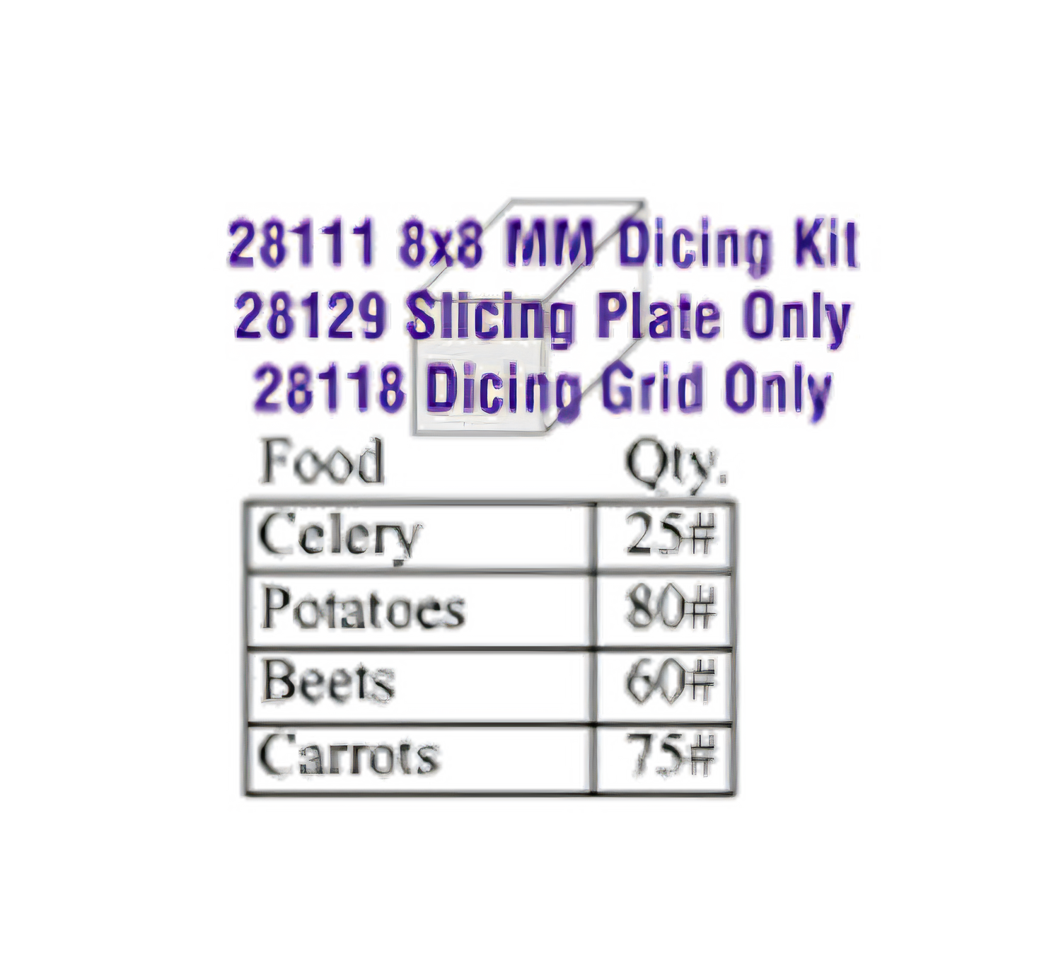Dicing Kit, 8 x 8mm (5/16"), includes: slicing disc (28129) & dicing grid (28118)