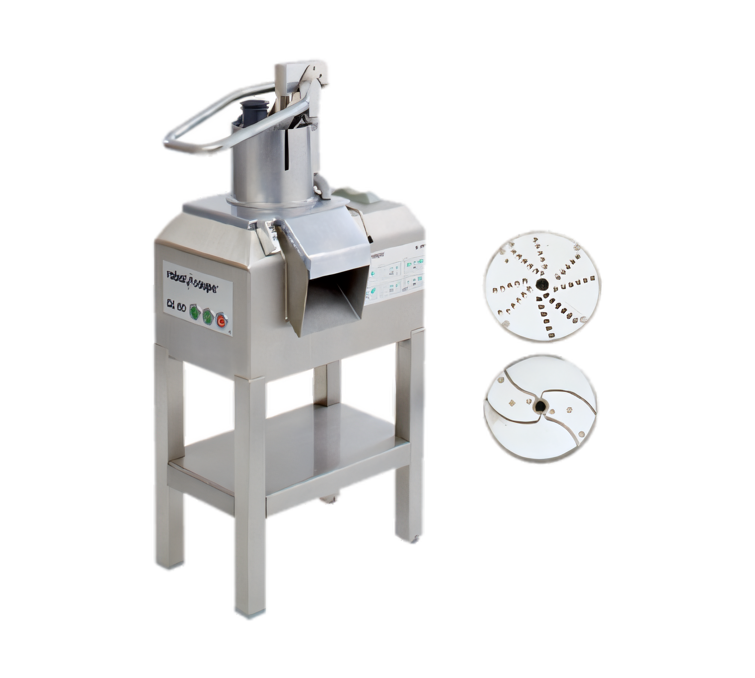 Commercial Food Processor, floor model, produces up to (3970) lbs./hr, includes: vegetable prep attachment with pusher feedhead & auto restart, (1) 3mm grating disc (28058), (1) 3mm slicing disc (28064), 2-disc rack, stainless steel base & stand, two speeds (425 & 850 RPM), 3 HP, 208-240v/60/3-ph, 6.5 amps, NEMA L15-20P, cETLus, ETL-Sanitation