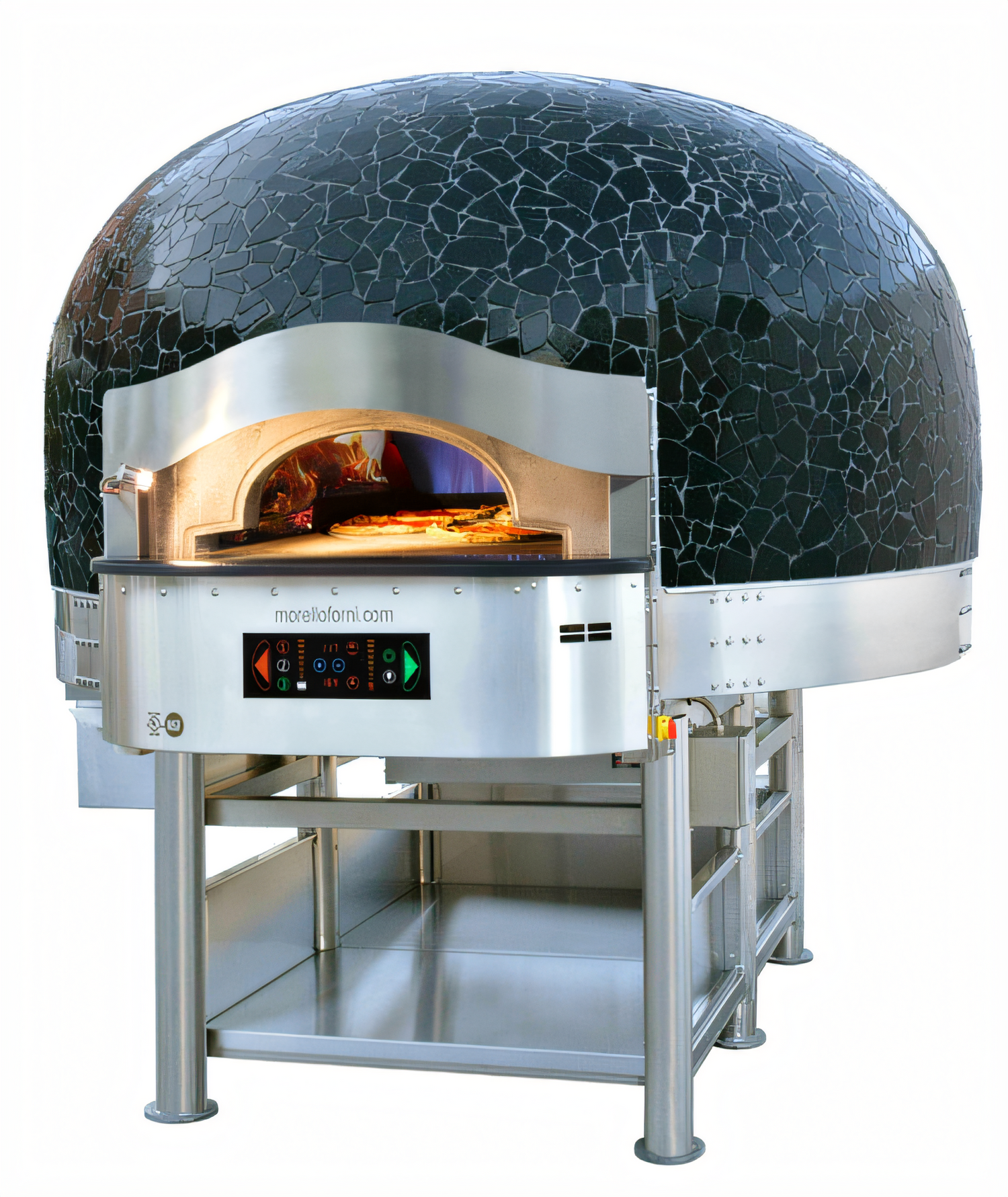 Morello Forni Gas Fired Pizza Oven, 43" inside cooking diameter, (7-8) 8", (6-7) 10", (4-6) 12", (3-4) 16" pizza capacity, 7” thick sealed insulated walls, NTELLITOUCH touch screen electronic controls, thermostat & flame modulator infrared gas burner system, premium grade alumina with heavy metal enclosure, mosaic cupola, 220v/60/1-ph, 71,800 BTU, NSF, UL