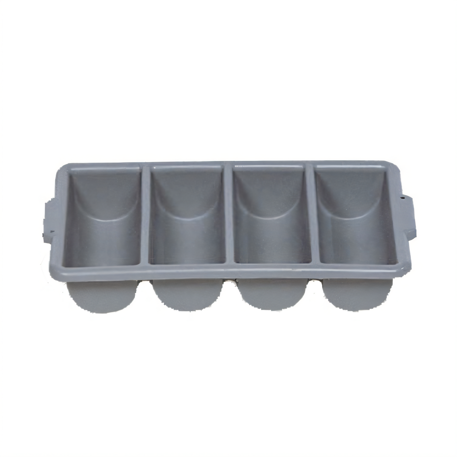 Cutlery Bin, 21-1/4"L x 11-1/2"W x 3-3/4"H, (4) compartments, ribbed design, durable, gray, NSF, Made in USA (contact Rubbermaid for broken case information)