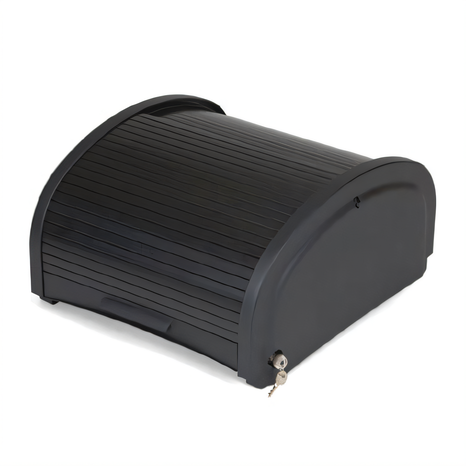 Rubbermaid Commercial locking security hood, black 9.5" x 17" x 19"—durable theft-deterrent protection for housekeeping supplies.