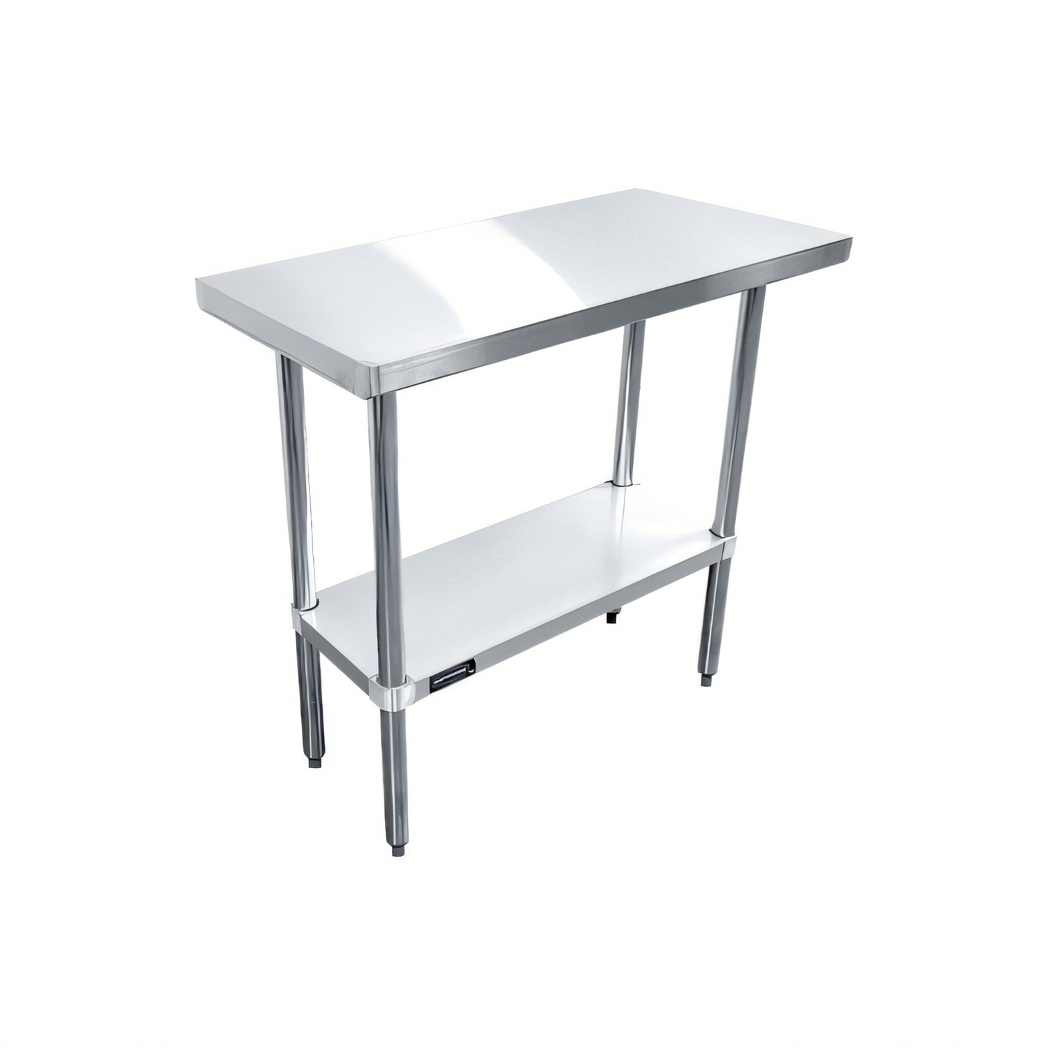Worktable, 48"W x 14"D x 35"H, 18/430 stainless steel flat top, galvanized legs & undershelf, beveled square edge, NSF