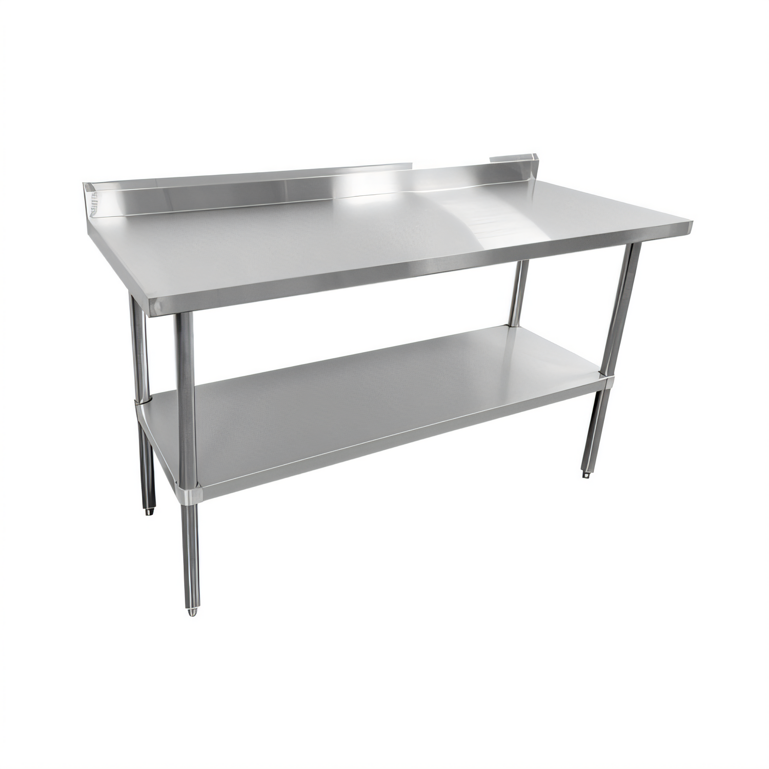 Worktable, 72"W x 24"D x 35"H, 18/430 stainless steel , beveled square edge, 5" backsplash, NSF