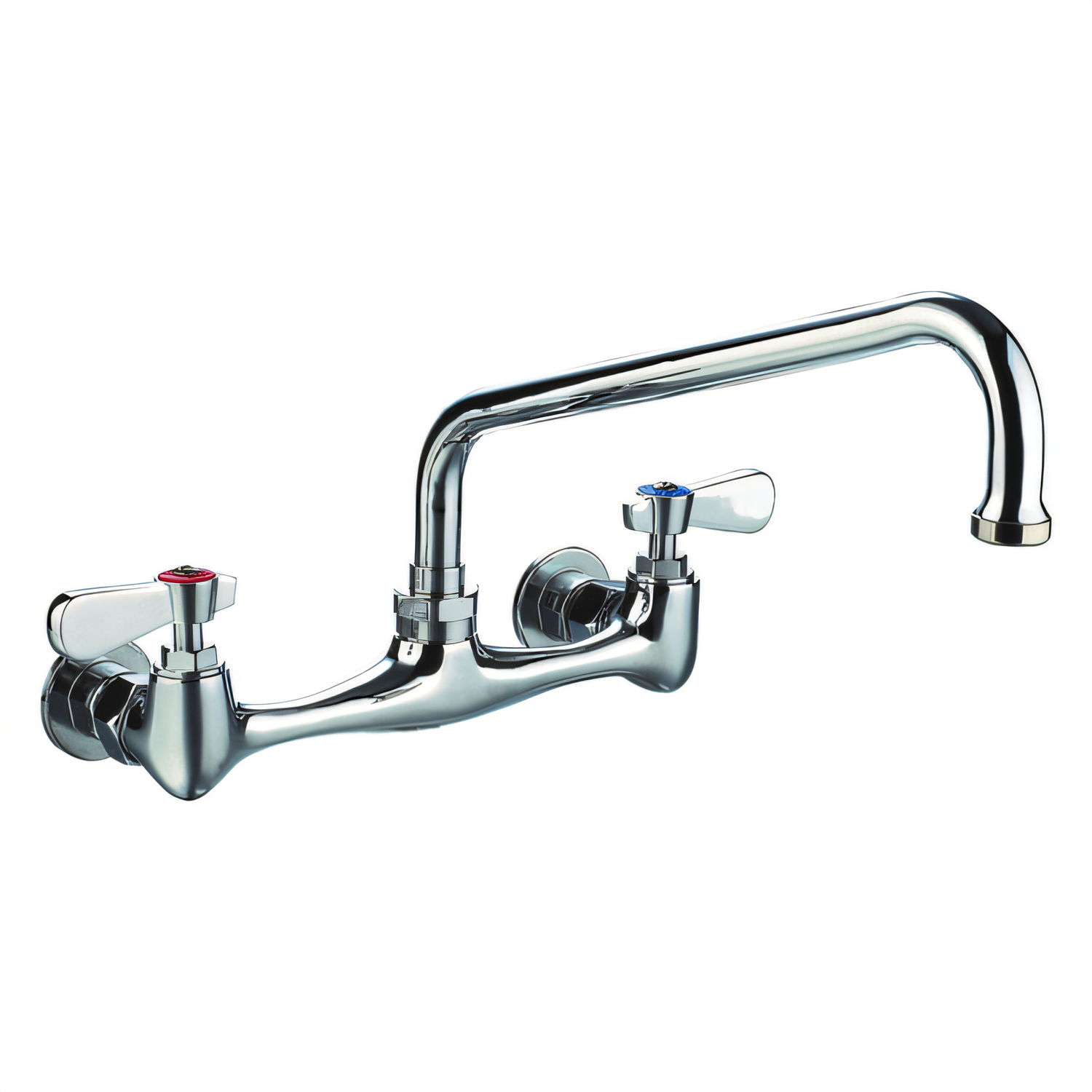 Tap® Faucet, backsplash/wall mount, 8" centers, 6" swing spout, lever handles, quarter-turn ceramic valve, 1/2" female inlets, low lead, 2 year warranty, NSF