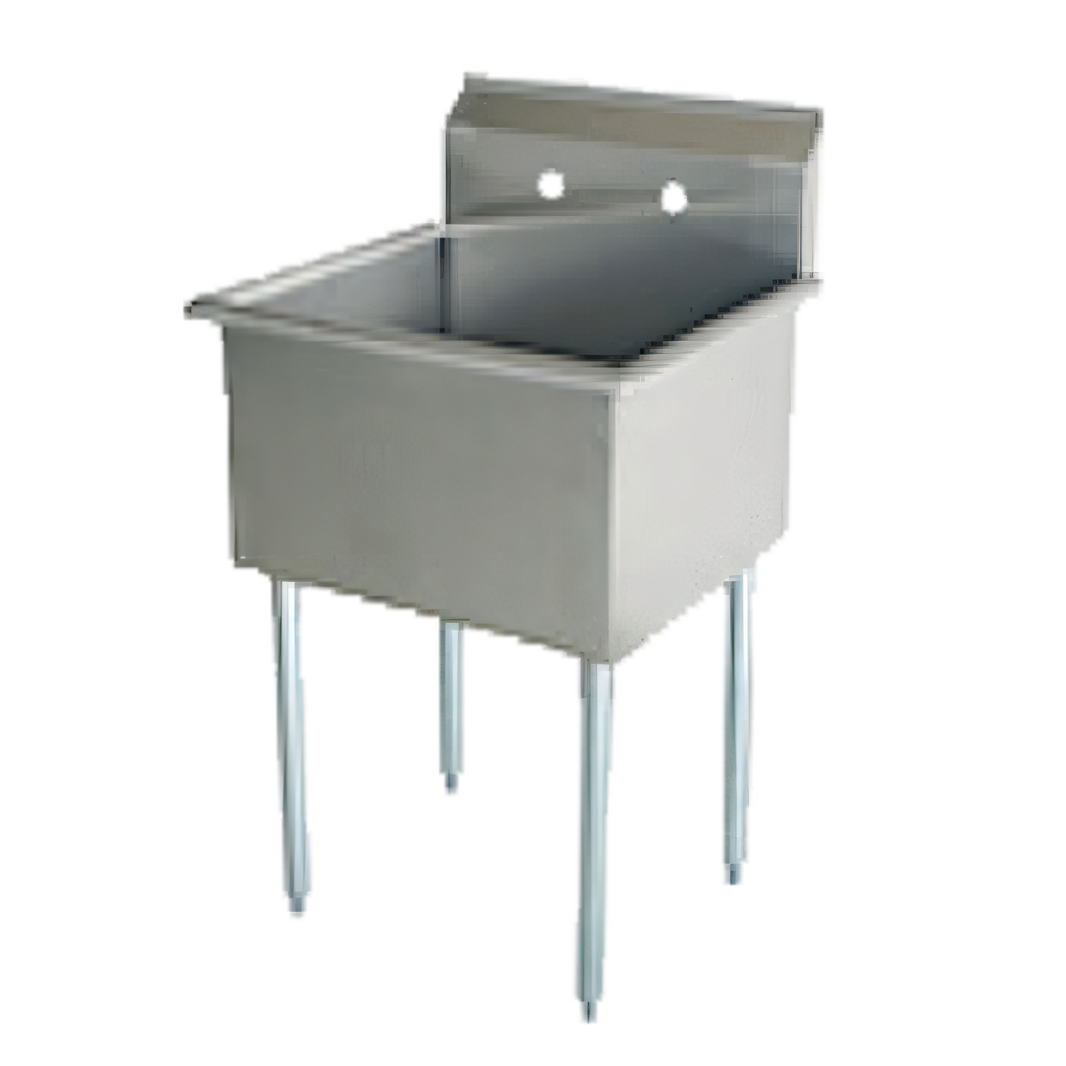 Serv-Ware - Sinks - 21" Budget Sink 1 Bowl - Dimensions: 21" W x 21.5" D x 41" H, 18/430 stainless steel, 18" wide x 18" front-to-back x 13" deep compartment, 9"H backsplash, 8" OC splash mount faucet holes, galvanized legs with adjustable plastic bullet feet, includes basket strainers