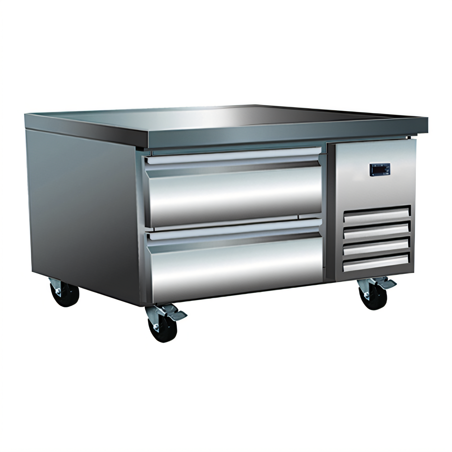 Chef Base, refrigerated, 38" W, self-contained side mounted refrigeration, 5.1 cu. ft. capacity, (2) drawers, auto defrost, auto evaporation of condensation, electronic thermostat, digital LED temperature display, stainless steel construction, (4) casters (2 brake & 2 non brake), R290 Hydrocarbon refrigerant, cETLus, ETL-Sanitation