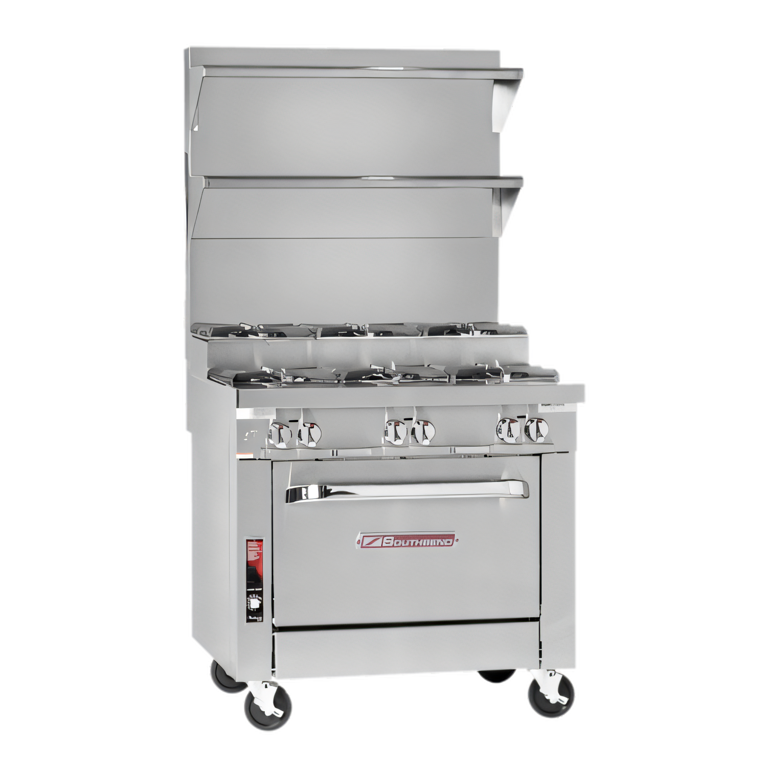 Southbend Model P36D-BBB-SU | 255,000 BTU | CSA & NSF ListedEngineered for the busiest commercial kitchens, the Southbend Platinum 36" Step-Up Range delivers brute heating power, exceptional durability, and the flexible cooking surface chefs demand. Six clog-free open burners – three at standard height and three raised 4" in the rear – make multi-pot cooking and pan visibility effortless, while the full-size standard oven beneath keeps trays of entrées or sides turning out on time. From quick sautés to slow roasts, this single piece of equipment takes on every task without breaking a sweat.