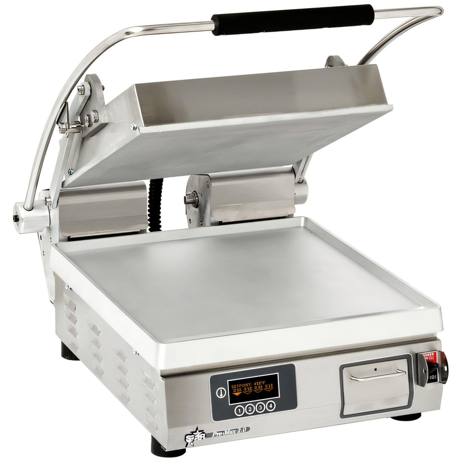Model PST14E | Electronic Thermostat + TimerTake panini-quality sear marks out of the equation and focus on pure, even browning. The Star Pro-Max 2.0® PST14E delivers a generous 14.5" × 14.2" smooth aluminum cooking surface, precision electronic controls, and the industry-leading torsion spring hinge that’s been torture-tested for millions of cycles. From breakfast burritos to signature melts, you’ll serve perfectly pressed sandwiches in less time—and with less operator effort—on a grill that’s built & backed in the USA.
