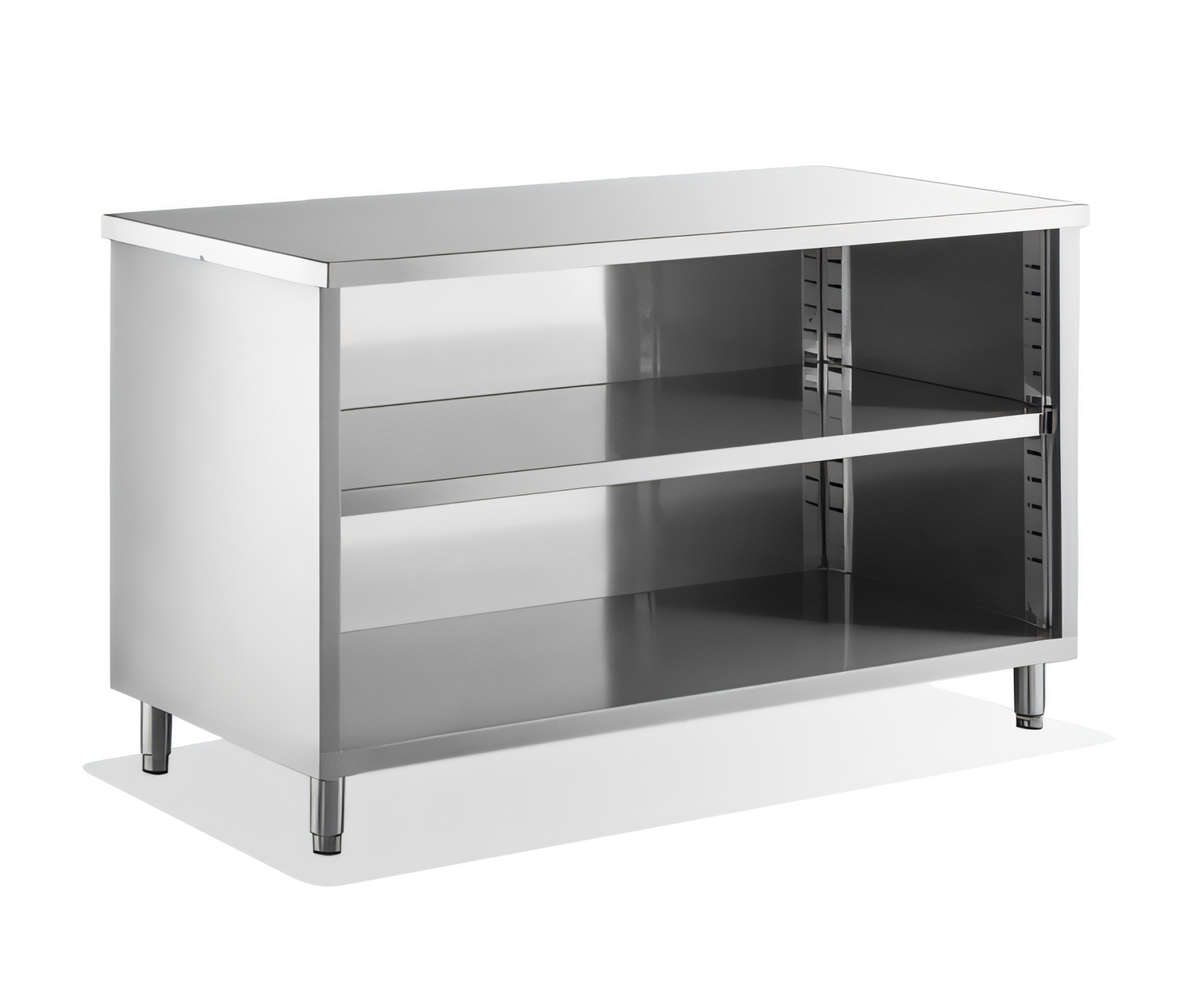 Dish Cabinet, 36"W x 15"D x 36"H, 18/304 stainless steel top shelf, adjustable mid-shelf, heavy-duty adjustable stainless bullet feet, NSF