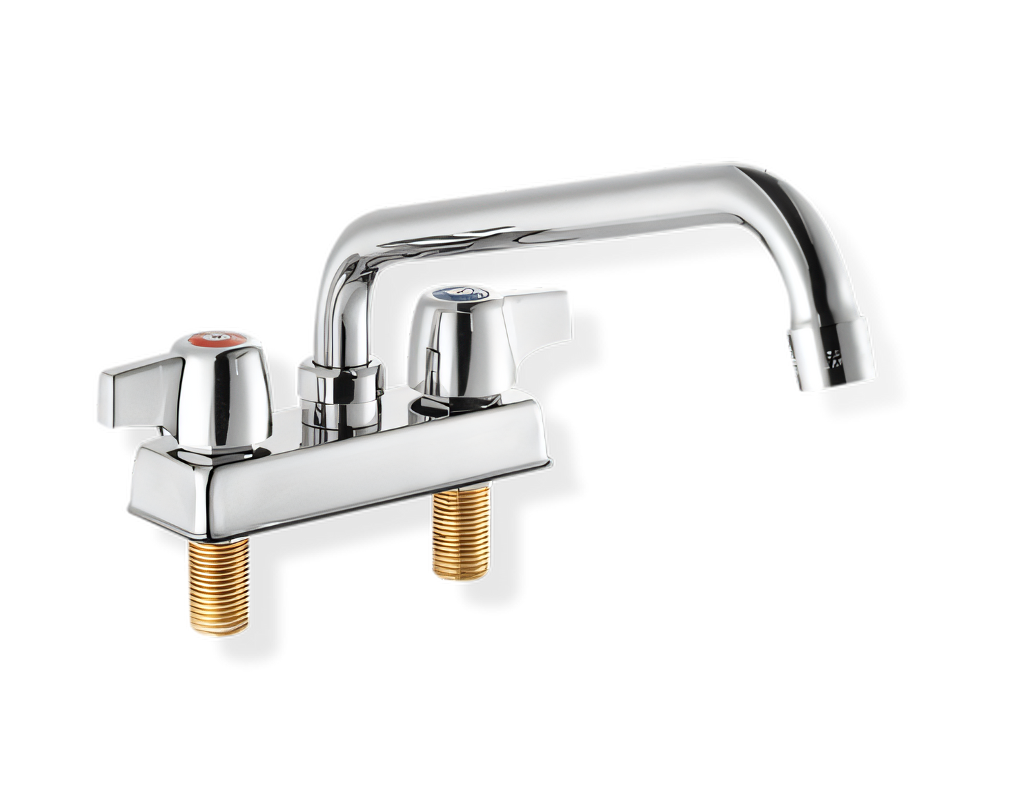 Steel Works Stainless SWFD-4-8LL 4" center deck-mount faucet with 8" spout—durable stainless build for commercial use and easy installation.