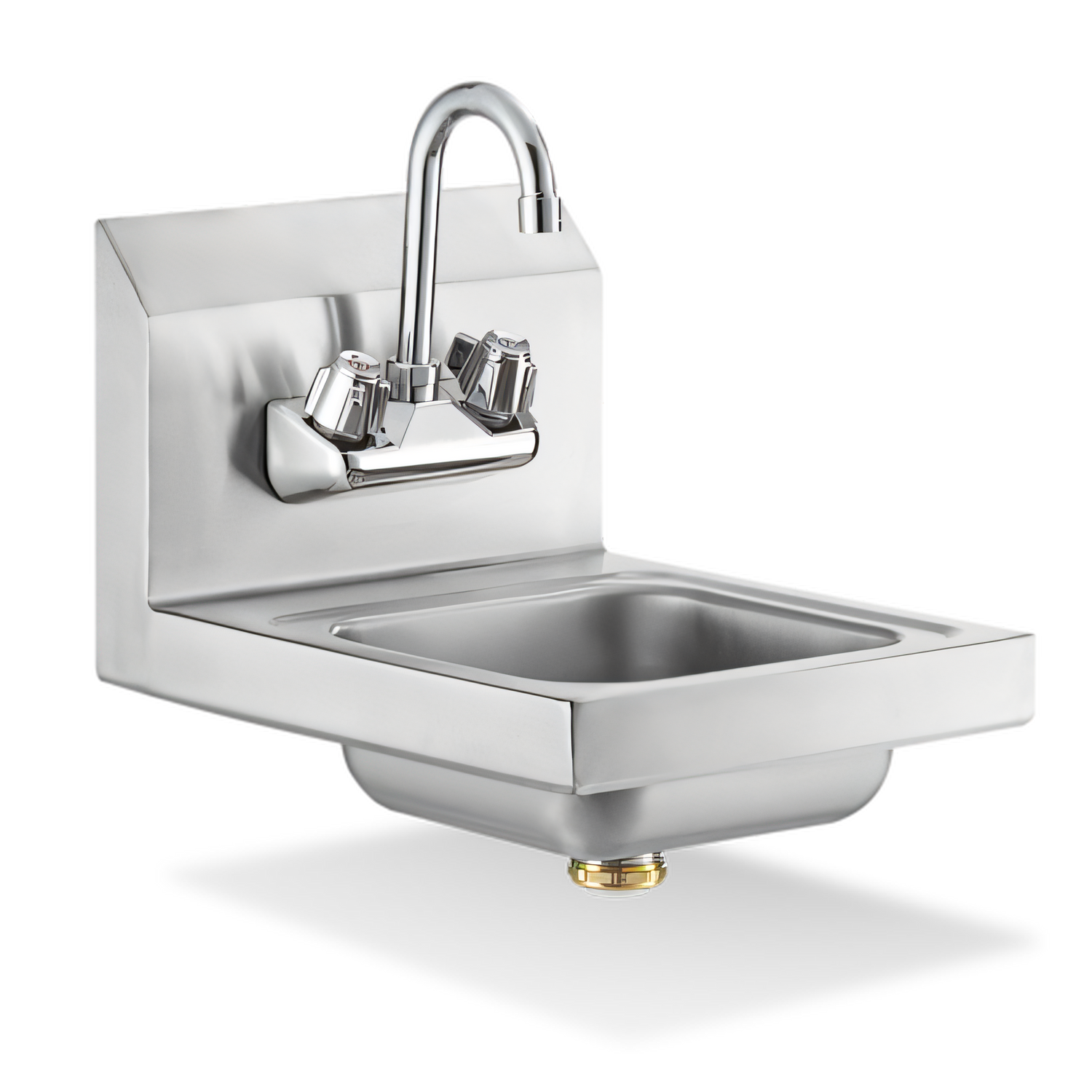 20GA.304S/S Hand Sink, Wall Mount, 15-1/4" x 15-3/4" x 13"H with 12-3/4" x 10" x 5" drawn bowl 18 GA 304S/S wall mounted clip Gooseneck faucet FW-4-4GLL included 1.5" drain basket included