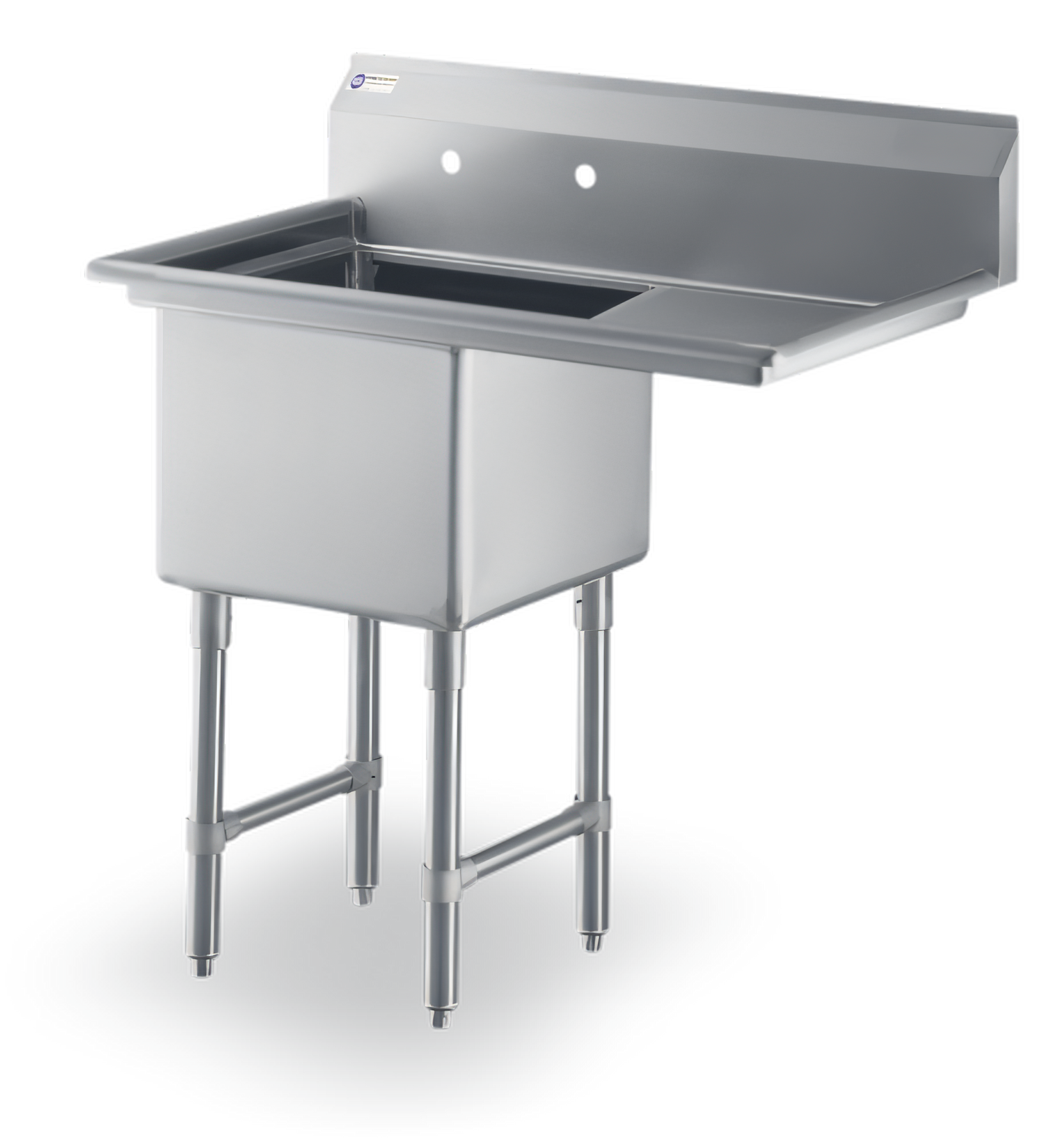 18GA.304S/S Sink, One Compartment, 25.50" x 42.50" x 43.75"H, 1 fabricated tub:16" x 20" x 12", 24" right drainboard 18GA.304S/S leg and socket, "H" shape S/S leg bracing, S/S bullet feet 3.5" drain basket included