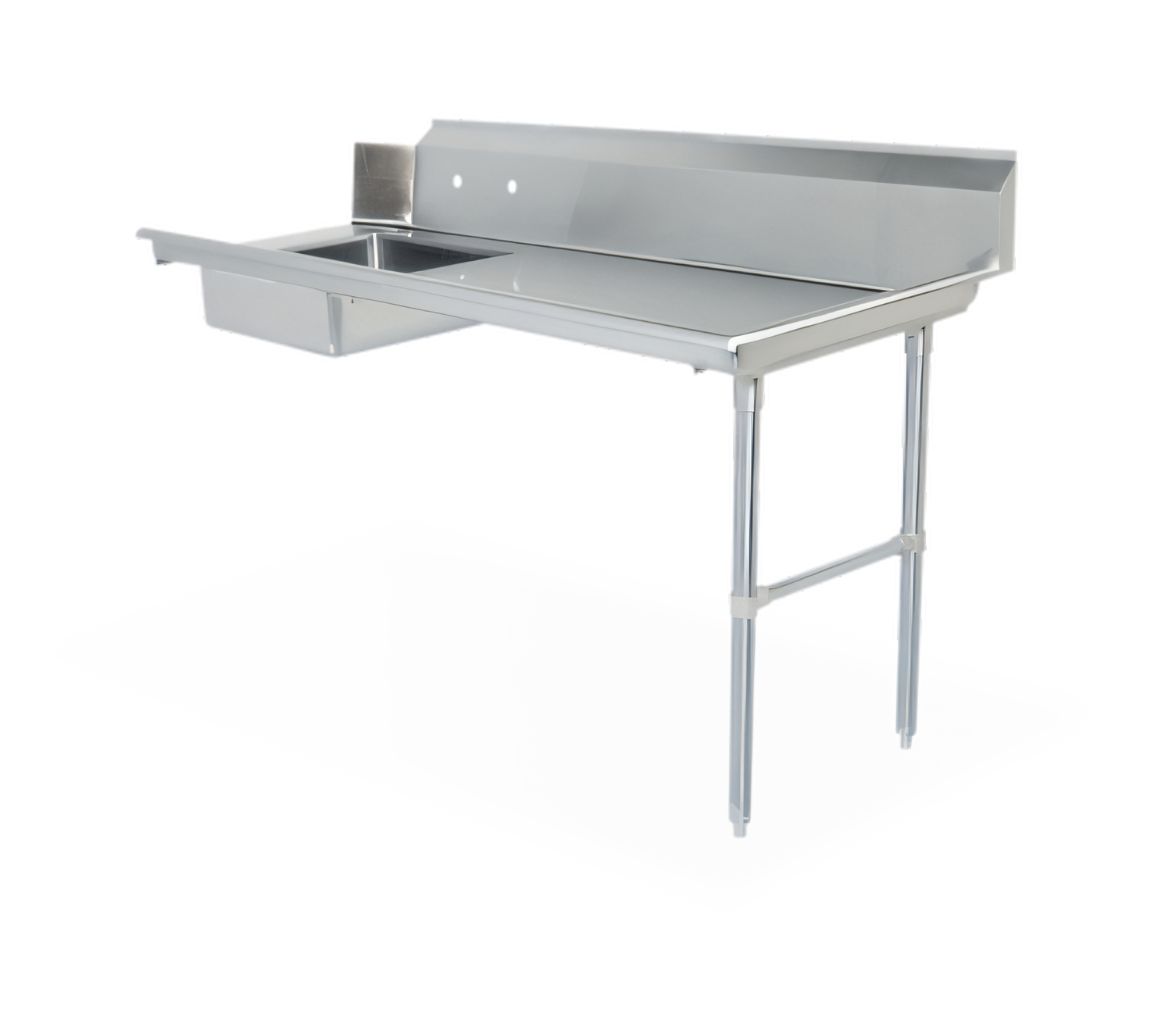 Soiled Dish Table, 16ga/304 stainless steel, 30" x 60" x 43-3/4"H, pre-rinse bowl:20" x 20" x 5" 18ga/202 stainless steel leg and socket, "H" shape stainless steel leg bracing, stainless steel bullet feet, 3.5 drain basket included