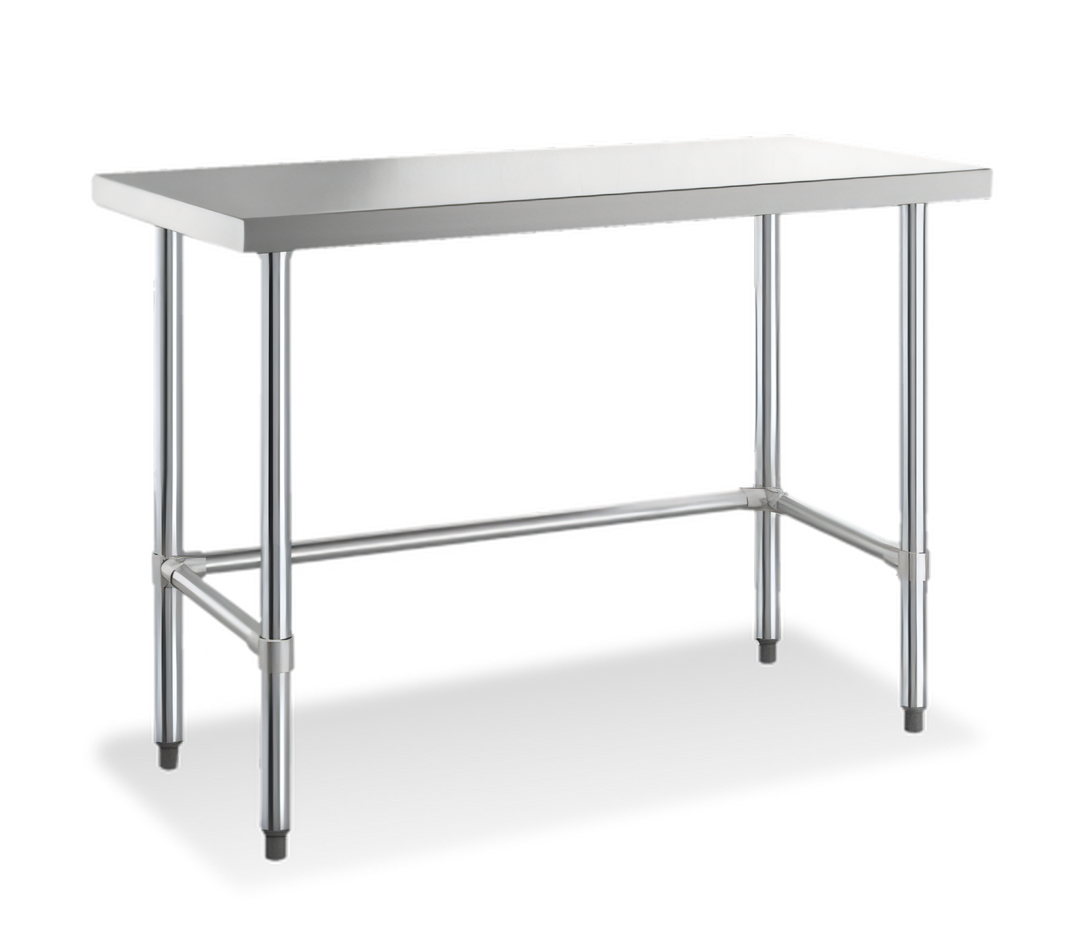 Open Base Worktable, 30"W x 30"D x 34"H, 18 gauge304 stainless steel flat top shelf, (4) stainless steel leg socket, stainless steel bullet foot