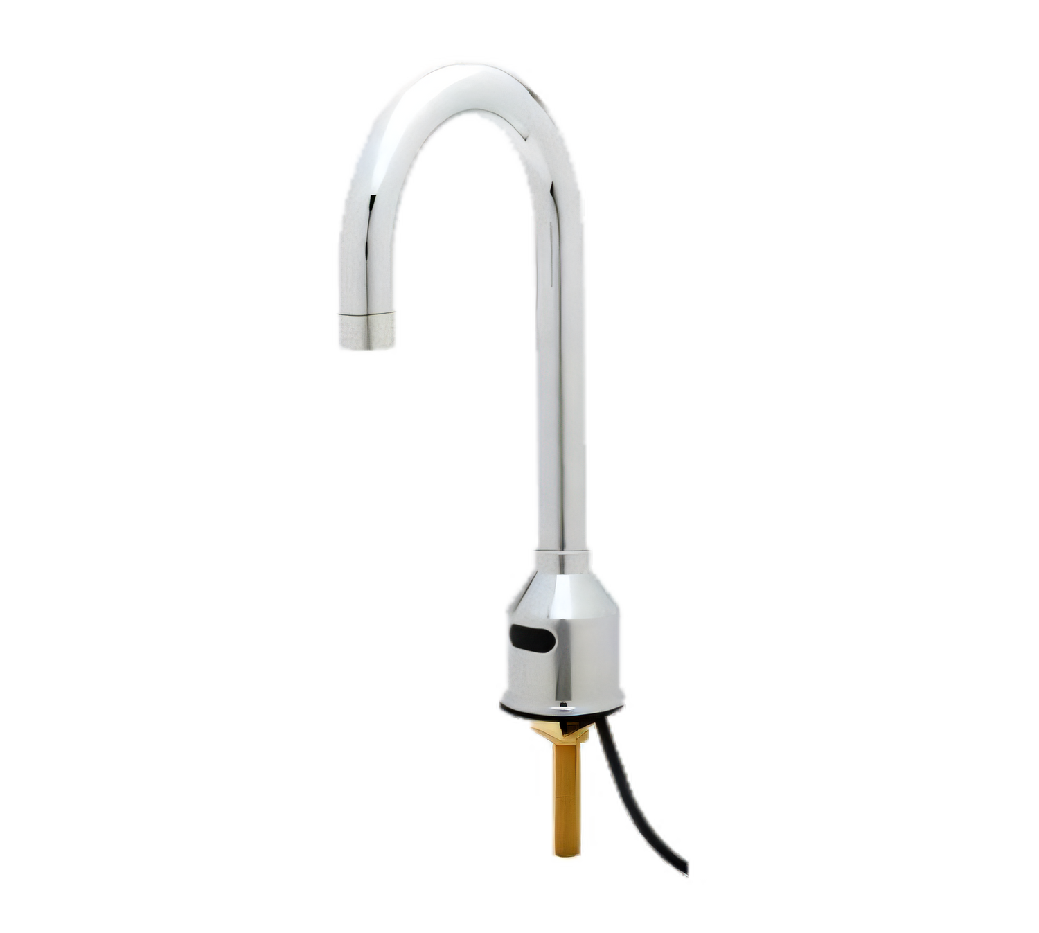 Equip Electronic Faucet, deck mount, rigid, 11-9/16" H, 5-11/16" spread, gooseneck, single hole, AC/DC control module, mixing valve, removable strainer, 24" sensor cable, (2) 18" supply hose, 100-240v adapter with 144" power cord, non-aerated spray device, .5 GPM vandal resistant, low-lead, polished chrome-plated brass, ADA Compliant, ANSI, UL, NSF