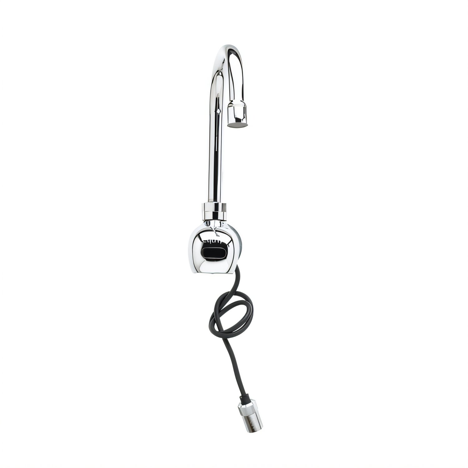 Equip Electronic Faucet, Single hole wall mount electronic sensor faucet with polished chrome plated brass body and 4 3/16" swivel gooseneck, 2.2 GPM vandal resistant aerator, AC/DC control module, temperature control mixing valve with check valves and 18" flexible stainless steel supply hoses with 3/8" compression connections. Certified to ASME A112.18.1/CSA B125.1, NSF 61-Section 9, NSF 372 and UL 1951. Meets ADA ANSI/ICC A117.1 requirements