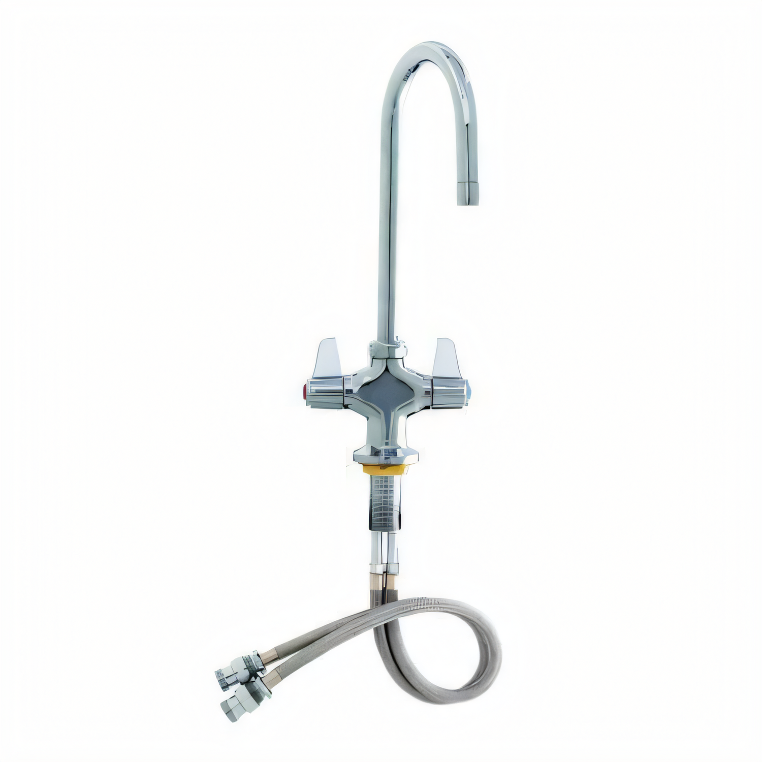 Equip Faucet, deck mount, swivel, 14-1/4" H, 5-9/16" spread, gooseneck, single hole, lever handle, quarter-turn cerama cartridges, (2)18" flexible hoses, 2.2 GPM aerator, low-lead, 1/2" male NPT, ADA Compliant, ANSI, NSF