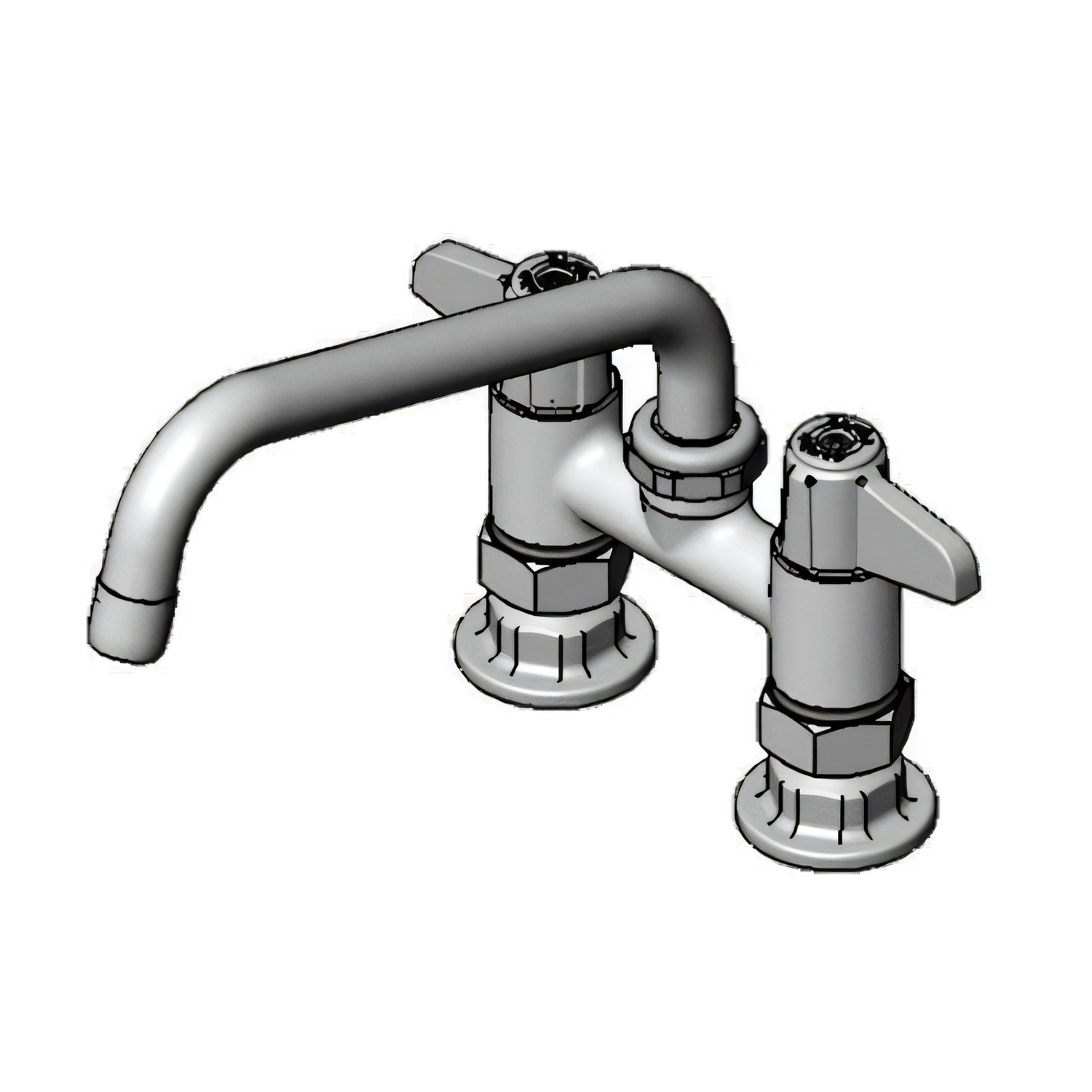 T&S Brass 5F-4DLS08 Equip commercial deck-mount faucet with 4" swivel base and 8" swing nozzle—durable low-lead construction ideal for busy kitchens. Features quarter-turn ceramic cartridges, lever handles, laminar flow device, included 1/2" NPT supply nipple kit, and ADA compliance for reliable, code-ready performance.