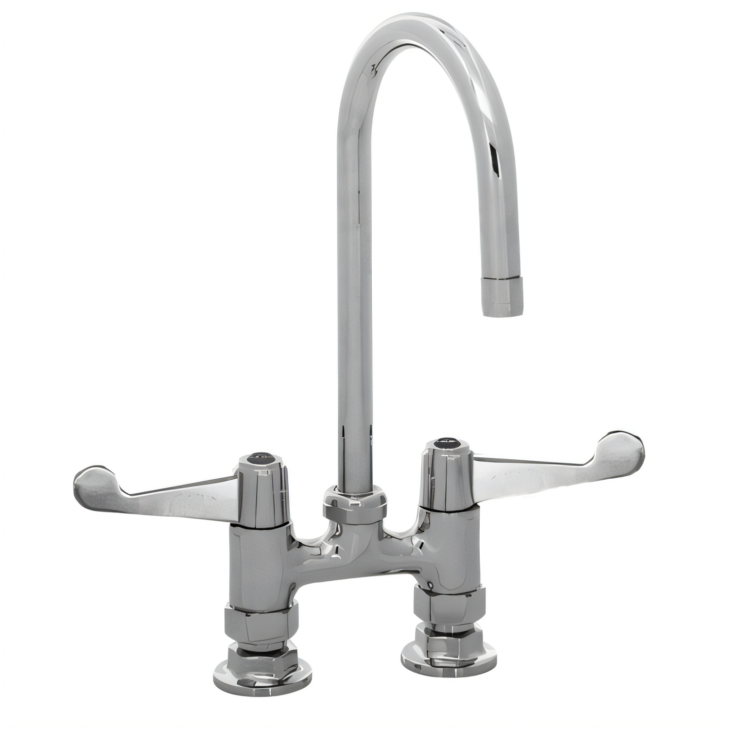 Equip Faucet, 4" center, deck mount, 5-1/2" gooseneck, quarter-turn ceramic cartridge, wrist action handles with color coded screws, 1/2" NPT female inlets, low lead, ADA Compliant