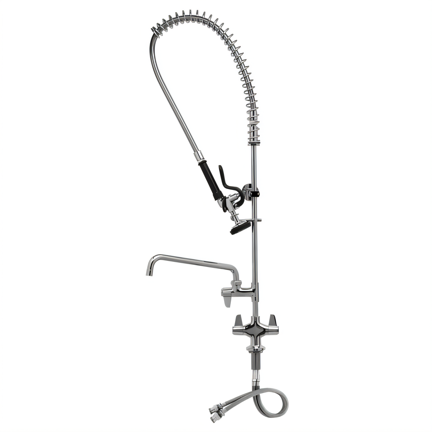 Equip Pre-Rinse Unit, single hole base, 18" flexible inlets, 6" wall bracket, 6" add-on faucet, quarter-turn Cerama cartridges, low lead