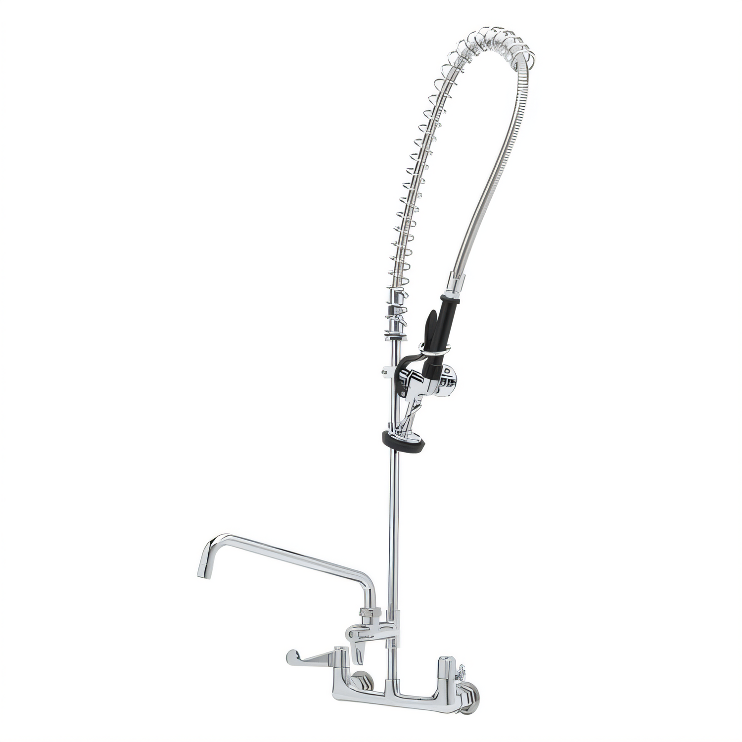 Equip Pre-Rinse Unit, 8" centers, wall mount faucet, wall bracket, 12" add-on-faucet, wrist action handles, quarter-turn Cerama cartridges, low lead