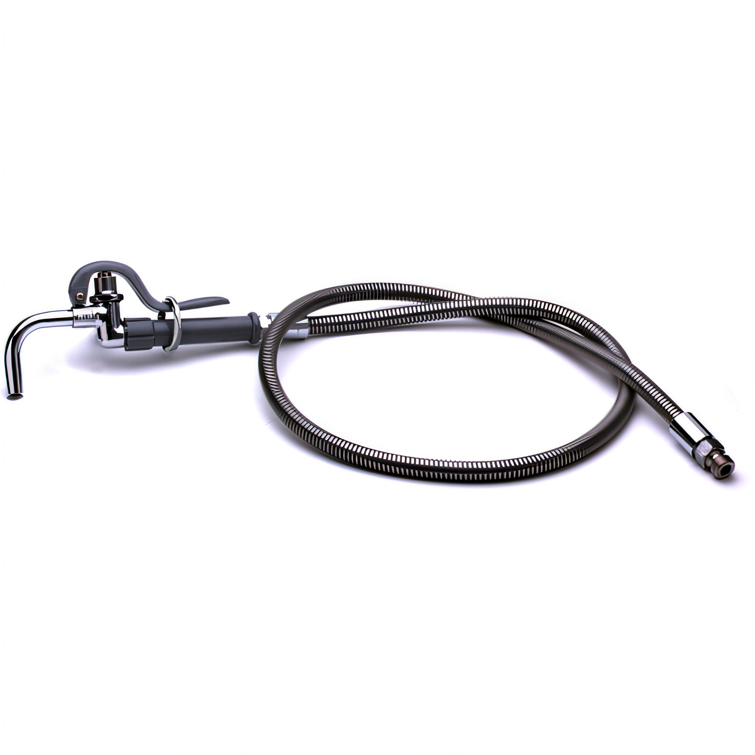 Pot & Glass Filler, automatic shut-off valve, plain end bent nozzle, retaining ring for continuous flow of water, 5' flexible stainless steel hose, 6' overall length, 1/2" IPS male inlet